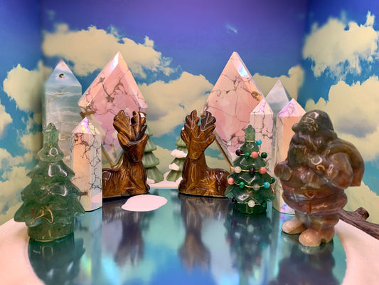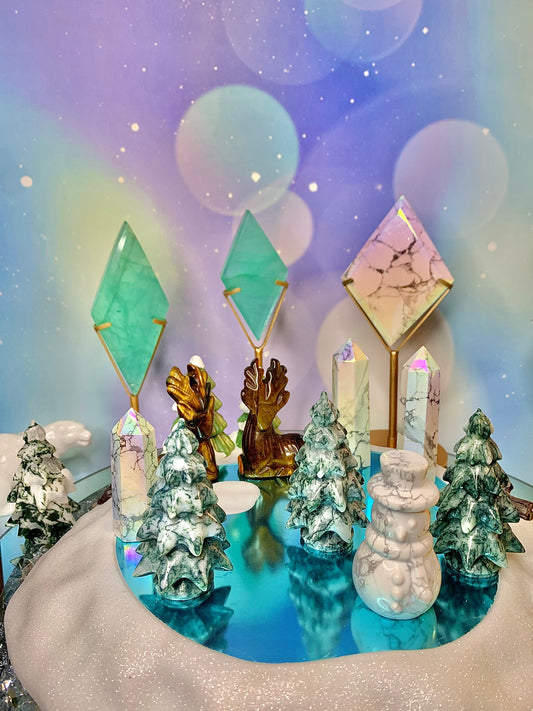 Green Strawberry Quartz Christmas Tree with Bead Ornaments