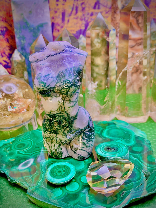 Moss Agate Round Bead Bracelet 6.5mm with Mother of Pearl Leaf Accent Bead