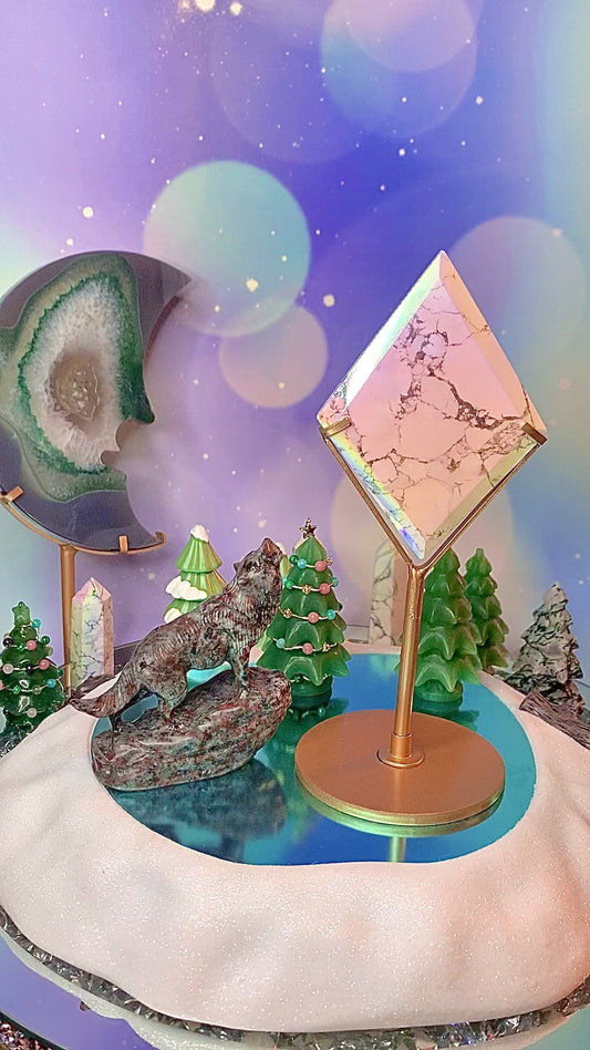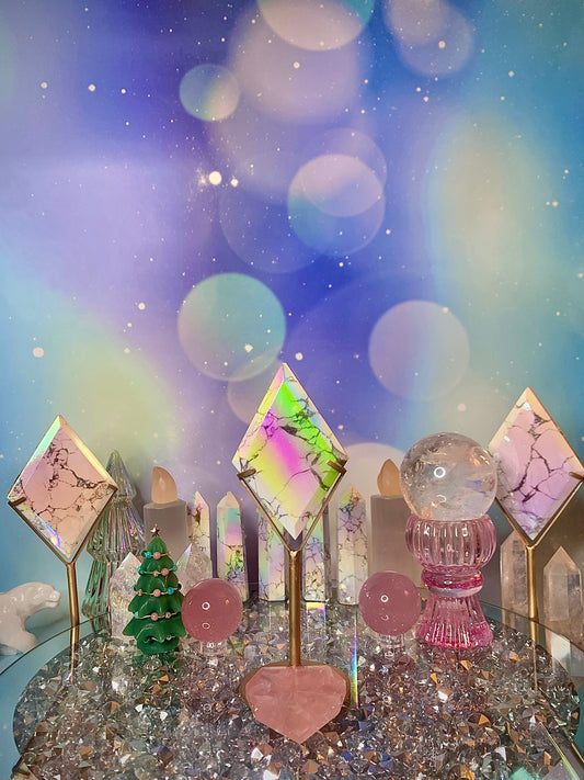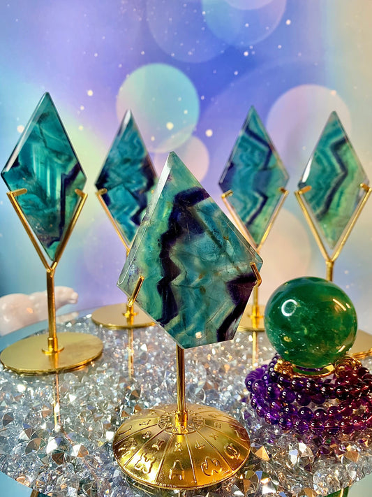 Rainbow Fluorite Flat Diamond ♦️ on Stand: