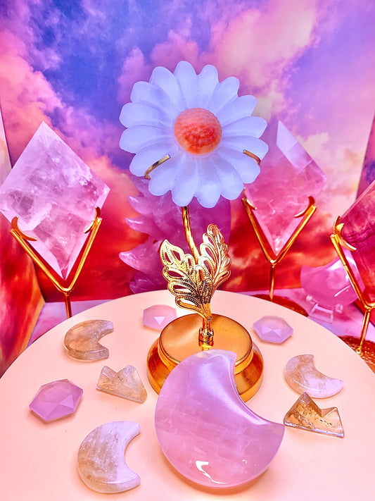 Selenite Sunflower 🌻 Carving on Golden Stand