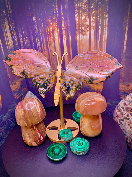 Ocean Jasper Butterfly Carving on Stand