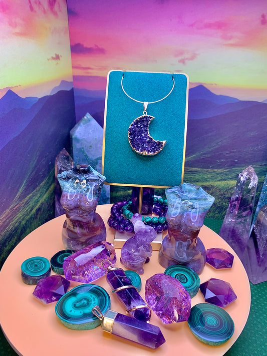 Druzy Amethyst Moon Pendant set in Sterling SilverRegular price $32.00 USDRegular priceUnit price per-