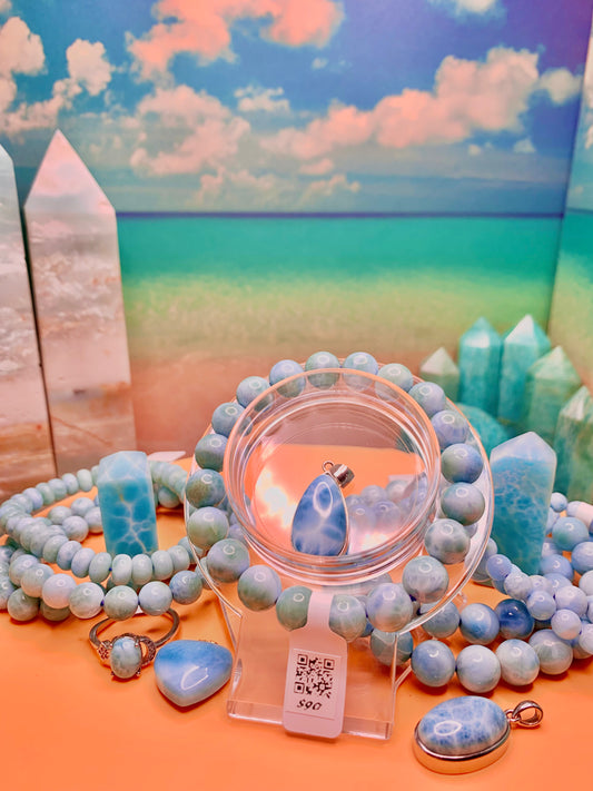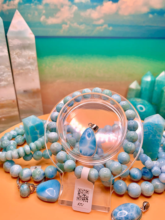 Larimar AAA Round Bead Bracelet 6mm Size 6.5