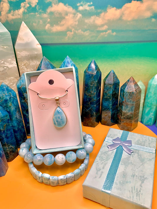 Larimar A+ Grade Round Bead Bracelet 9-10mm