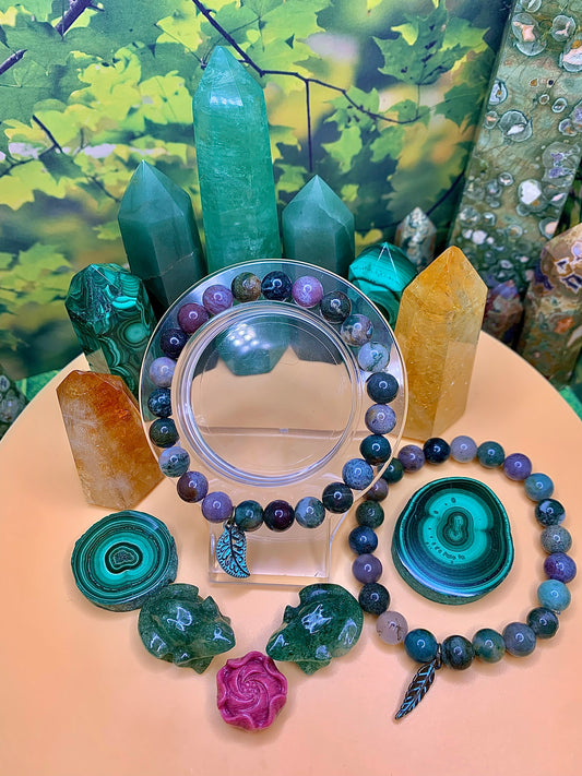 Ocean Jasper with Moss Agate Round Bead Bracelet 8.5-9mm