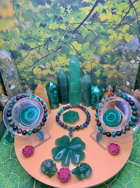 Azurite, Malachite & Chrysocolla Round Bead Bracelet 8-9mm