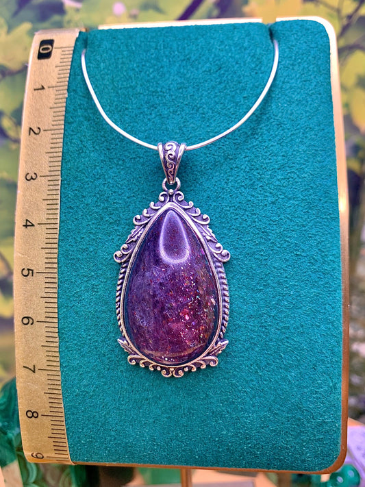 Iolite with Confetti Sunstone Pendant set in Sterling Silver (Vintage Style)