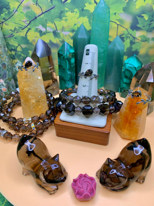 Smoky Quartz Faceted Bead Bracelet (8-12mm)