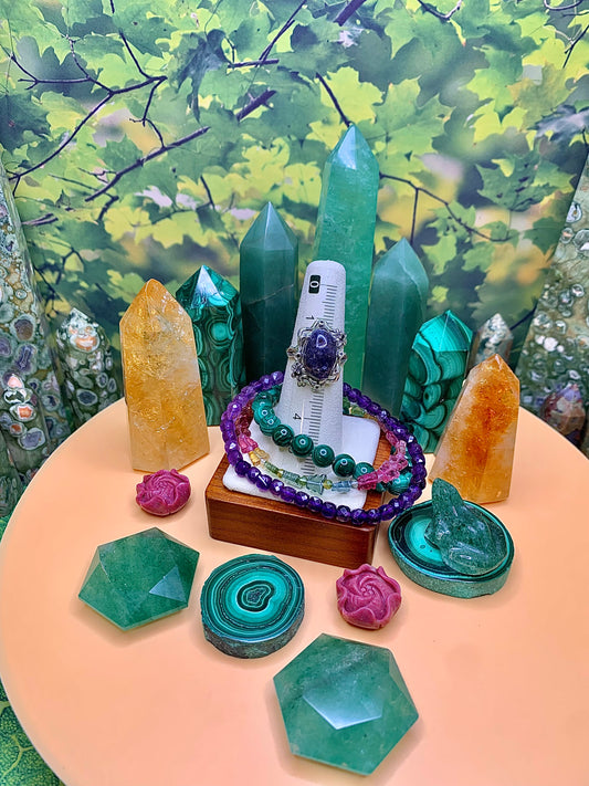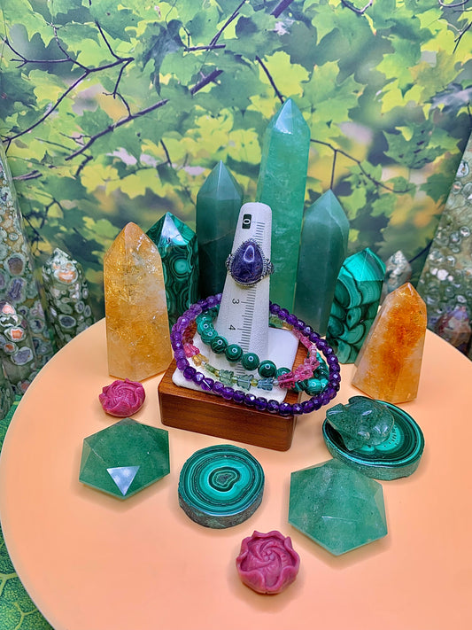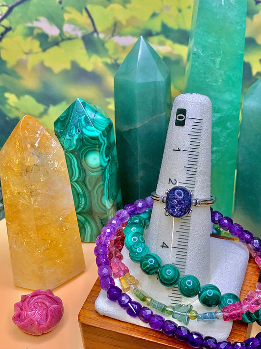Iolite with Confetti Sunstone Ring in Sterling Silver (Vintage Style)