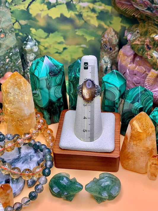Golden (Black) Sunstone Oval Cabochon Ring with Vintage Style Accents set in Sterling SilverRegular price $72.00 USDRegular priceUnit price per-