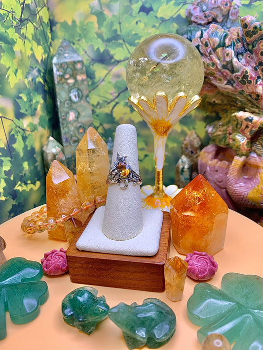 Citrine Cat Paw 🐾 & Crescent 🌙Moon Ring in Sterling SilverRegular price $48.00 USDRegular priceUnit price per-