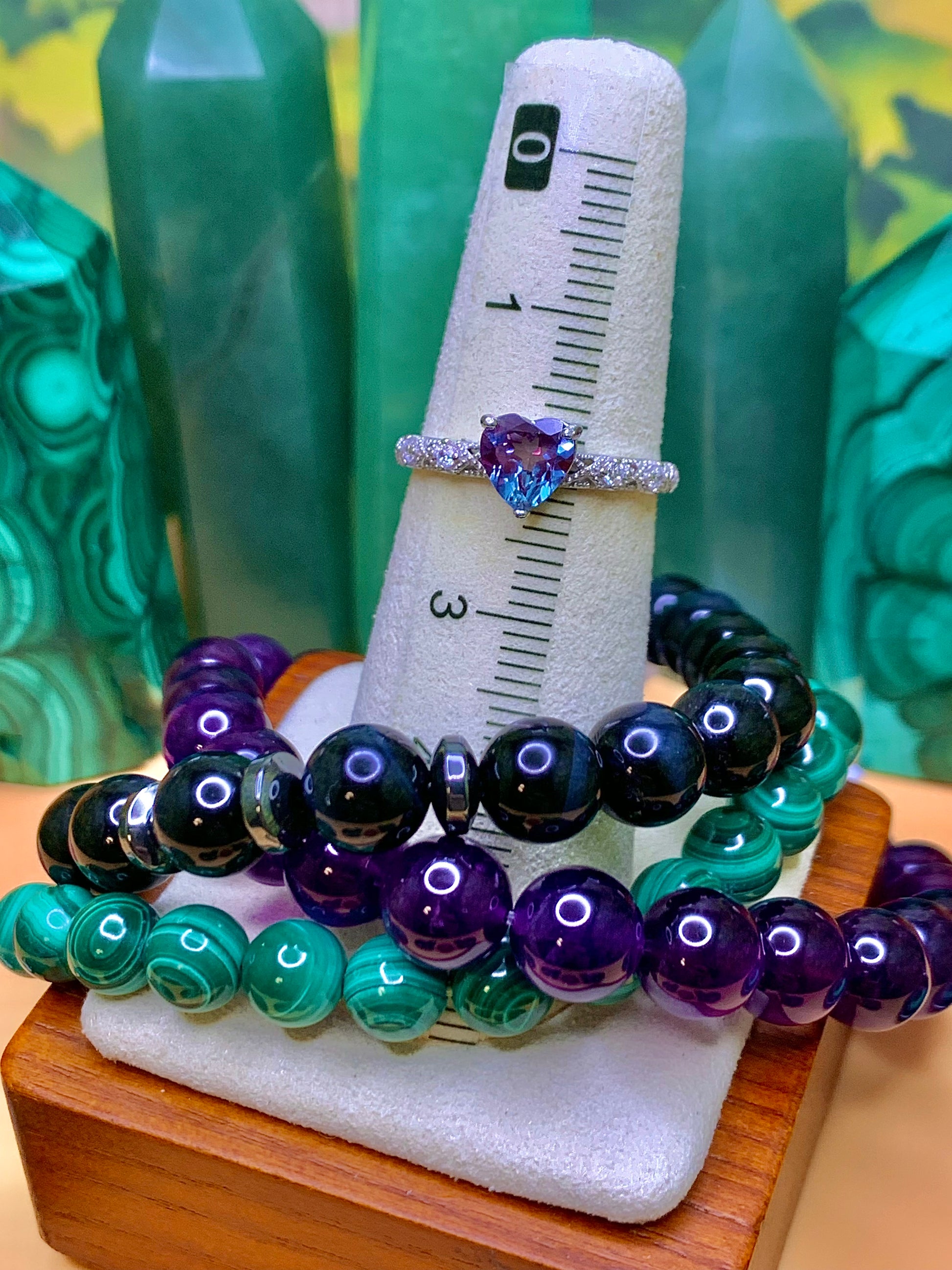 Alexandrite is a stone of transformation. It allows us to see our life from a different perspective and helps us to shed the layers of unnecessary energy, to become our true selves. It assists in realigning our body and mind and brings to light our true purpose. Divinely connected, it raises our vibration and bridges the physical with the etheric realms.