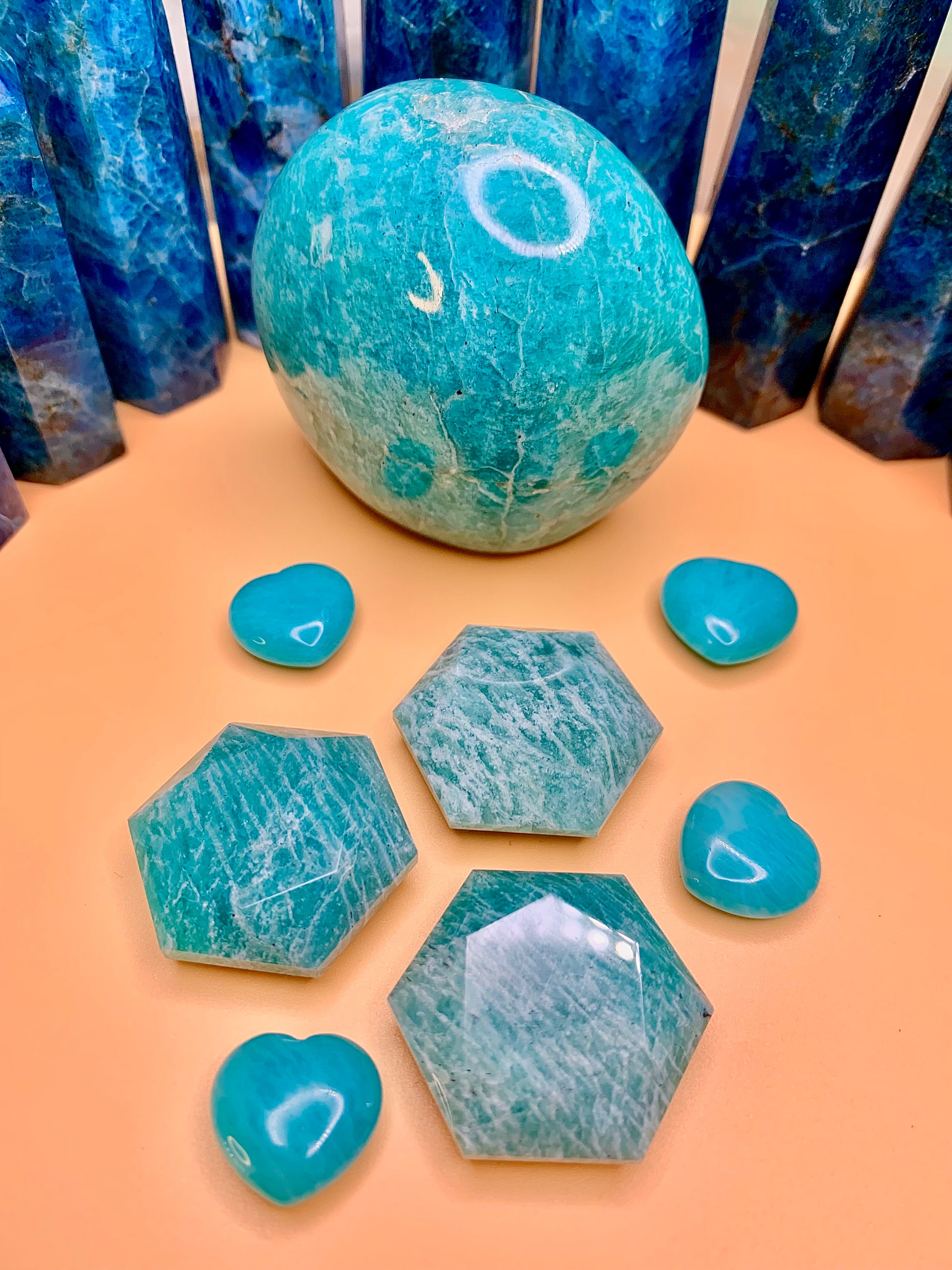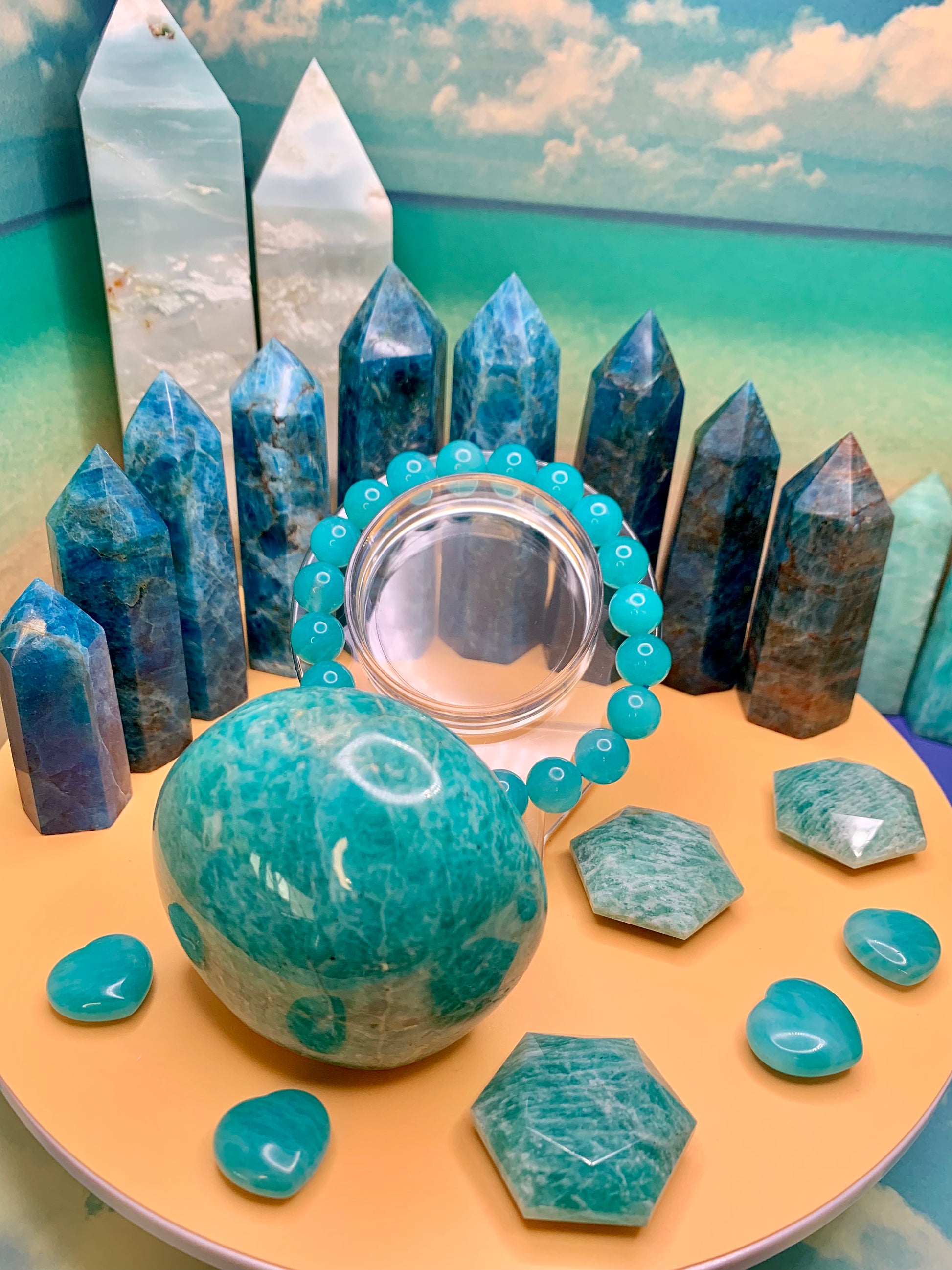 While alleviating worry and fear and soothing emotional trauma, it dispels any negative energy, aggravation and blockages. Amazonite works closely on the Heart & Throat Chakras, but it can soothe all other Charkas.