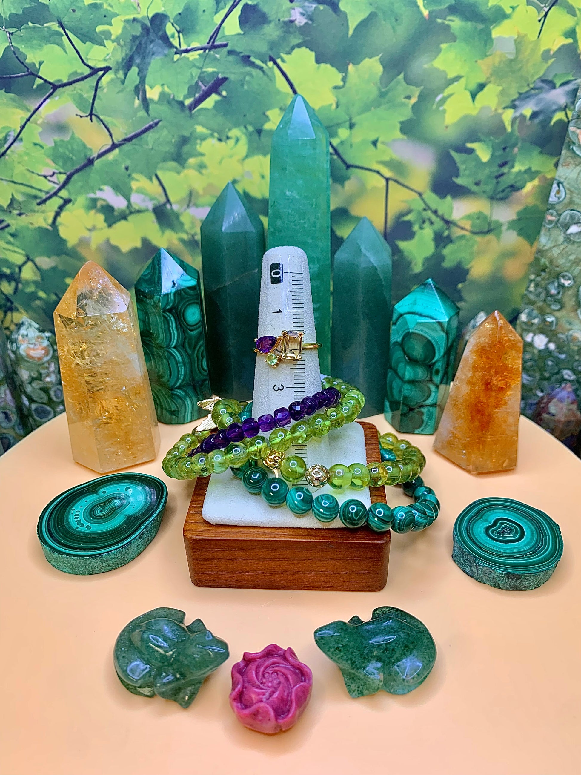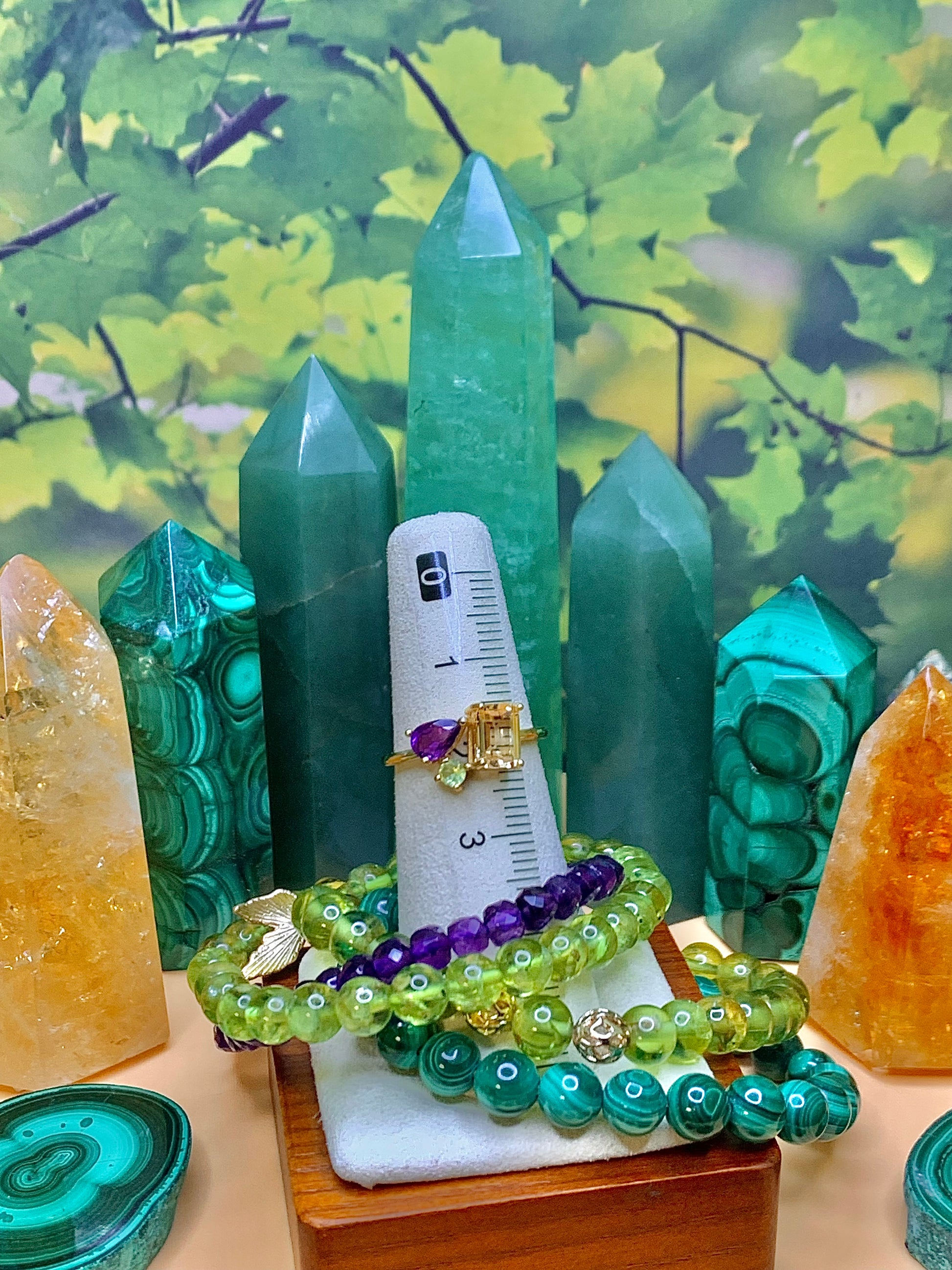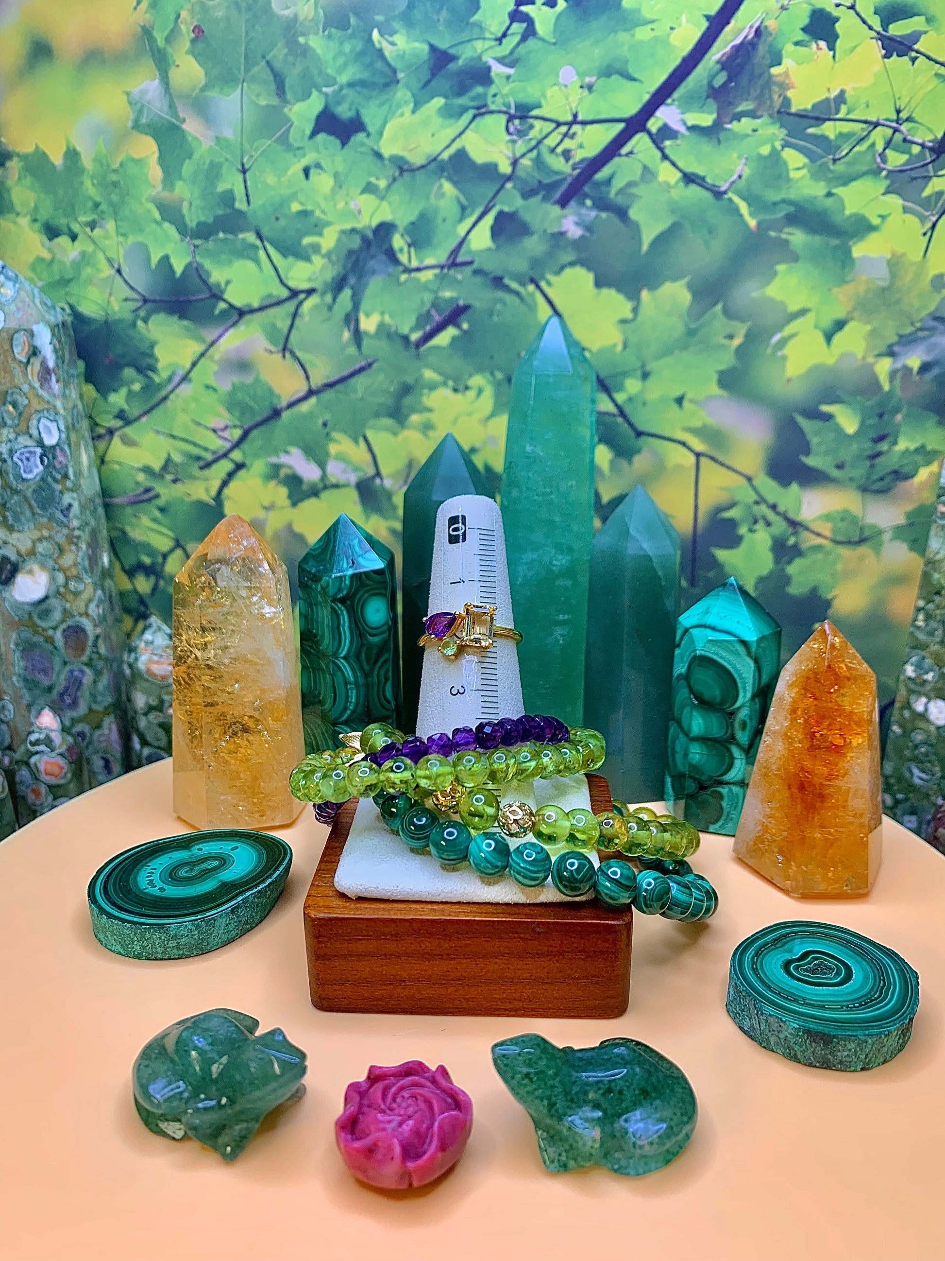 Peridot is a powerful cleaning stone, known to inspire compassion and believed to bring good health and restful sleep. It purifies the mind, body and spirit, alleviates greed, jealousy, bitterness & resentment and reduces stress, guilt and anger. Peridot opens our hearts to joy & new relationships & inspires creativity. It is a very happy stone, bringing about a warm inner sense of worth and well-being.