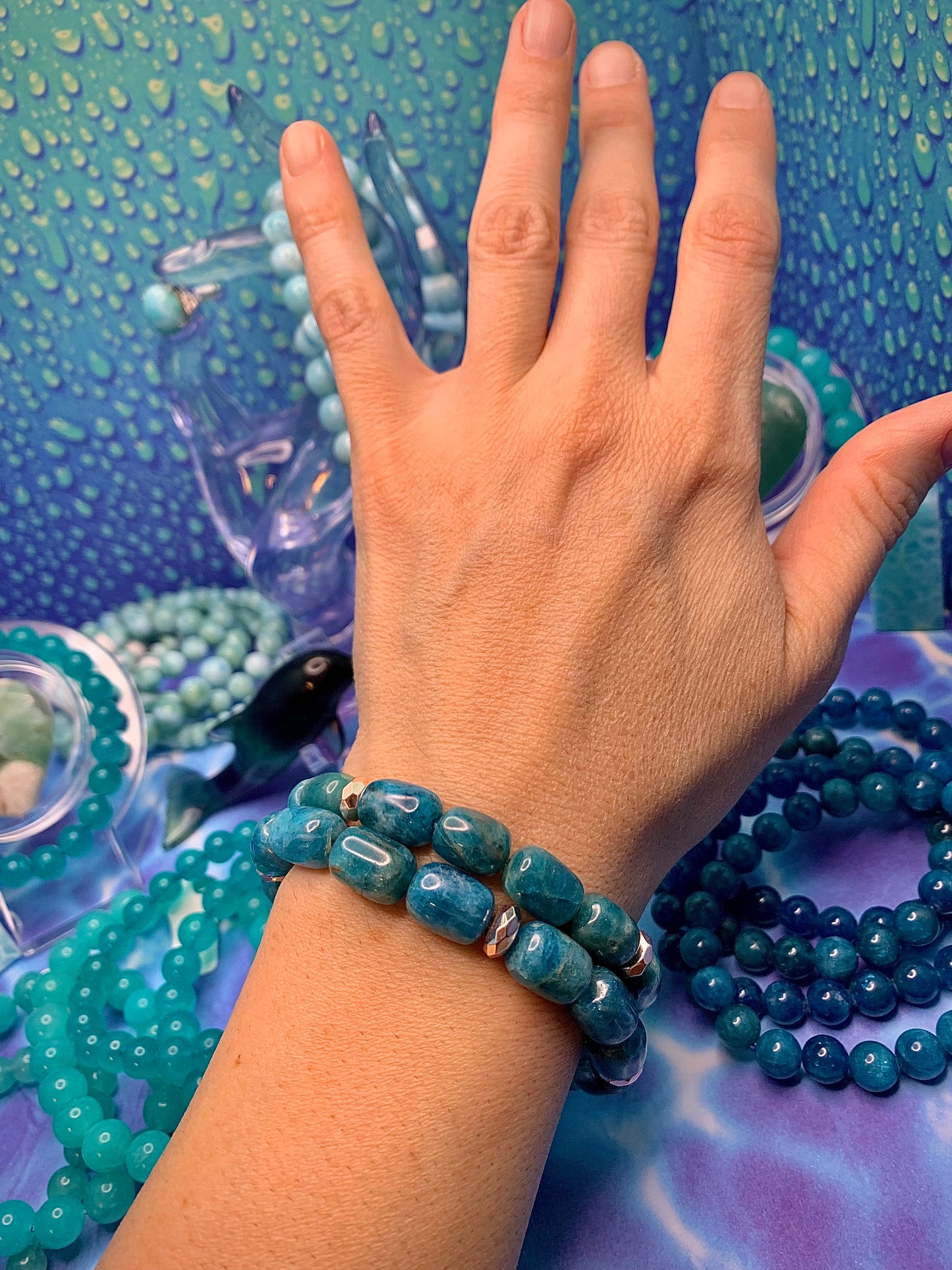 Apatite Bean 🫘 Bracelet with Rose Gold Hematite Spacers