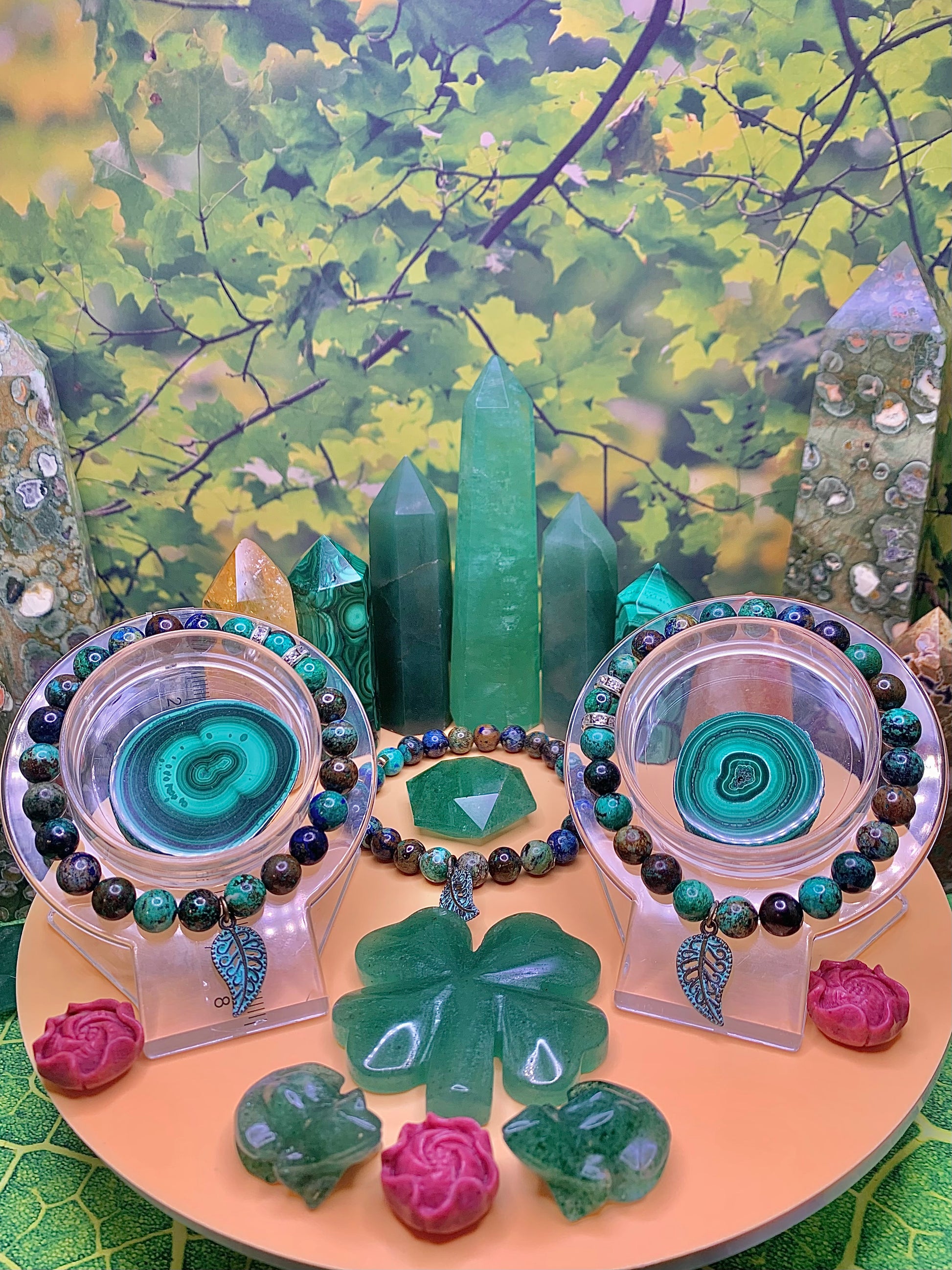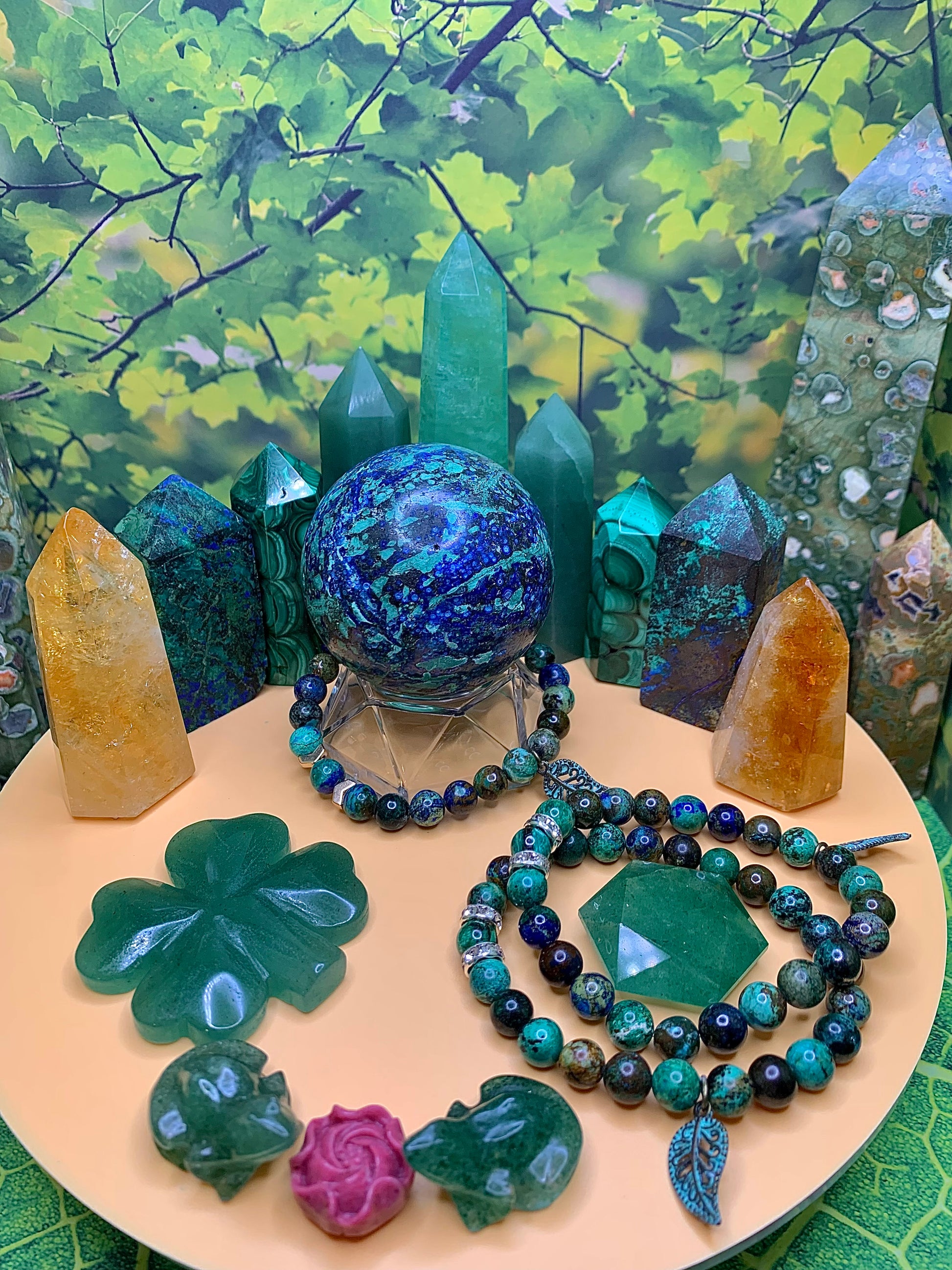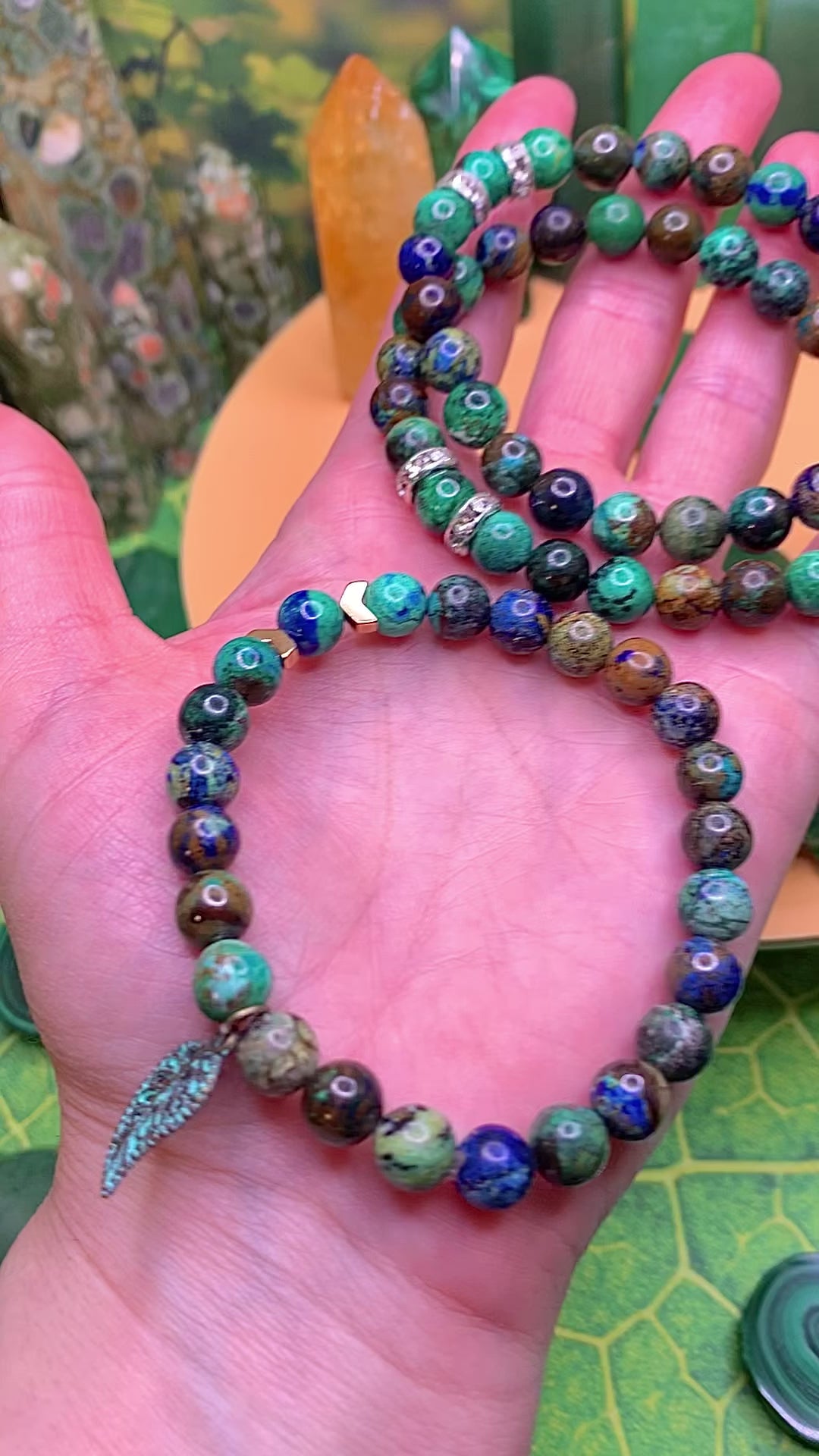 Azurite, Malachite & Chrysocolla Round Bead Bracelet 8-9mm