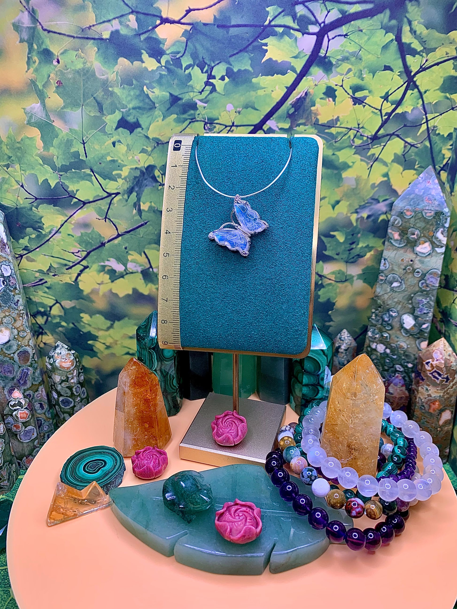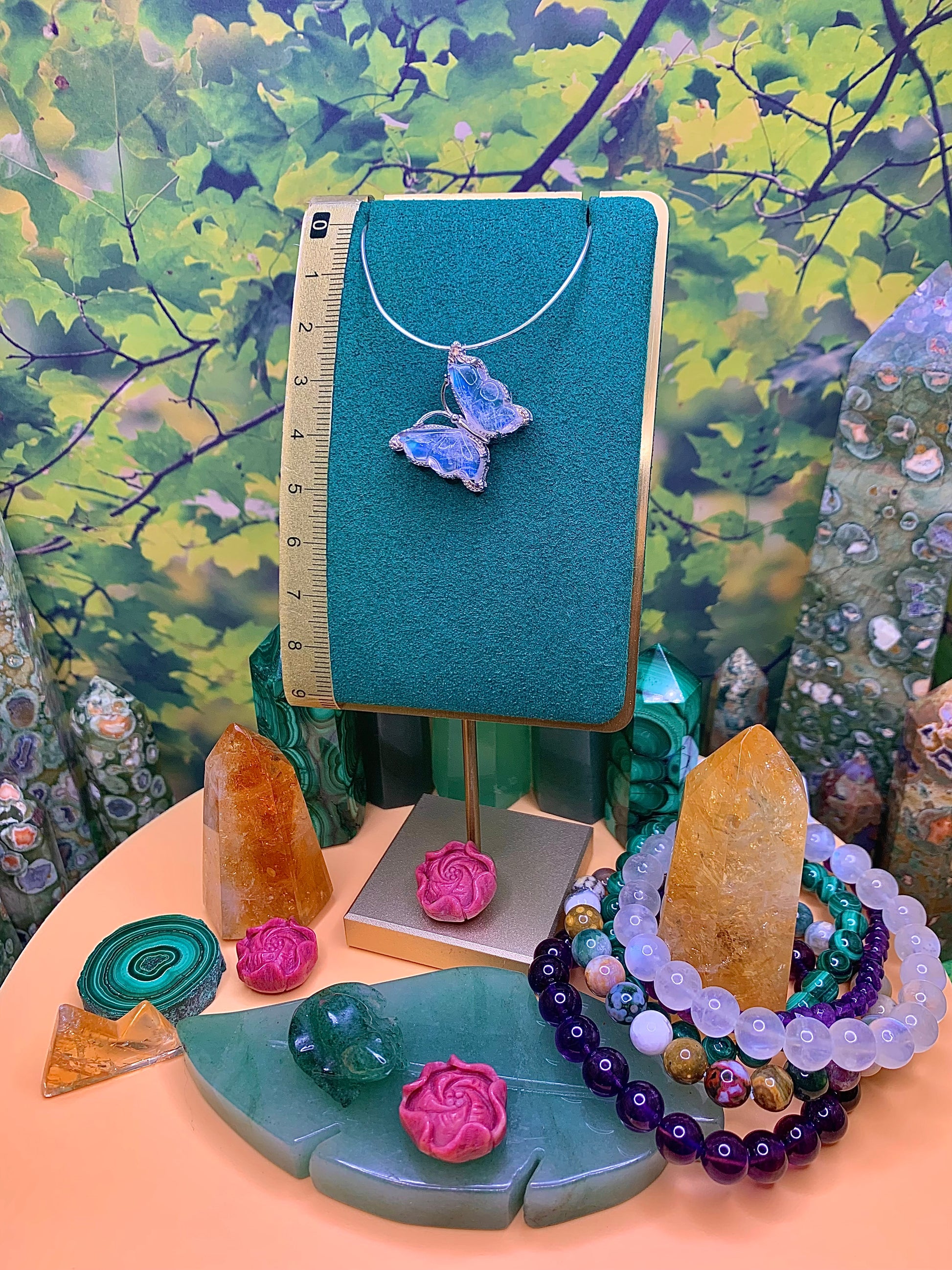 Blue Flash MoonStone Butterfly 🦋 Pendant in Sterling Silver