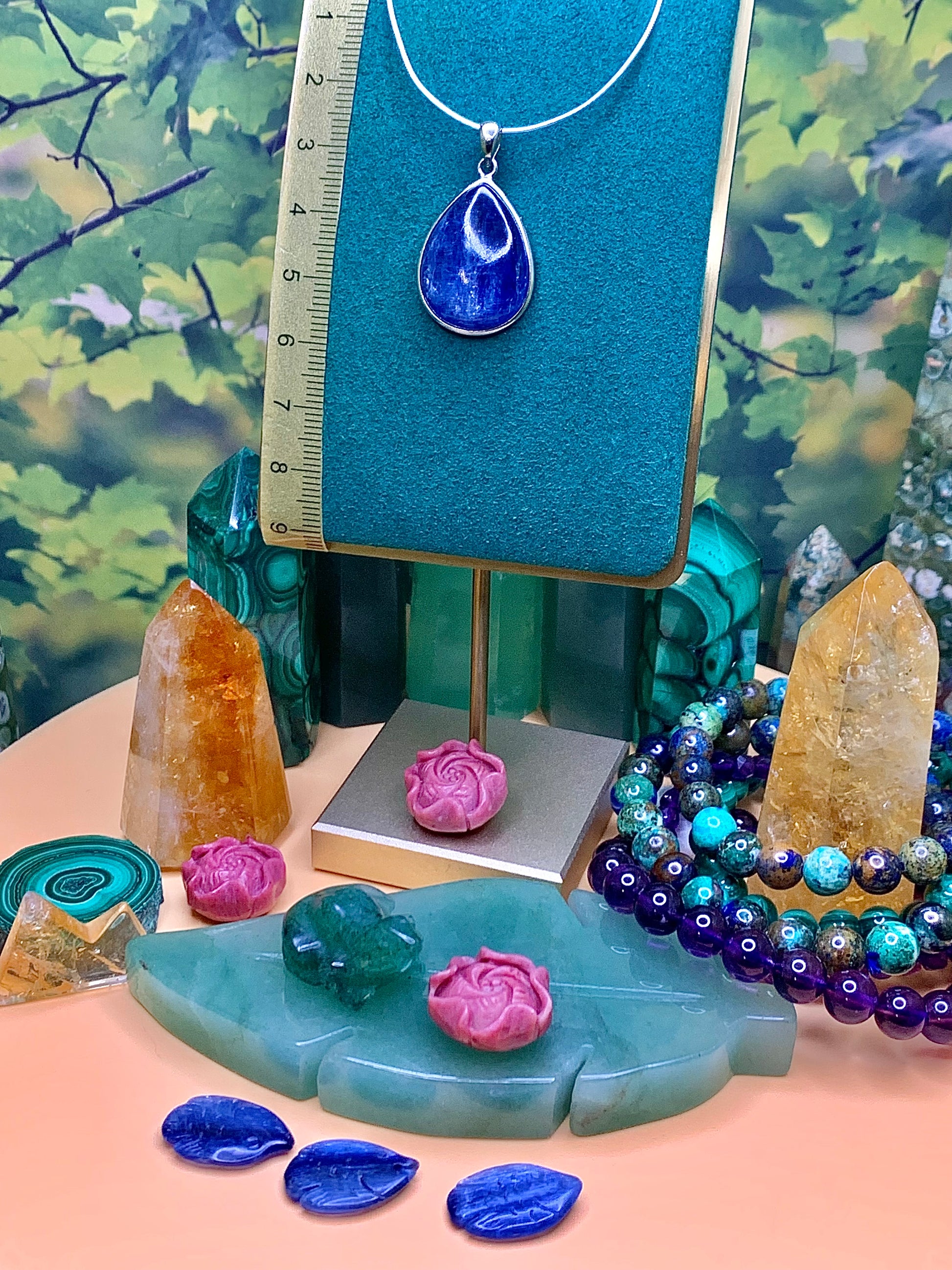 Blue Kyanite Teardrop Cabochon Pendant set in Sterling Silver
