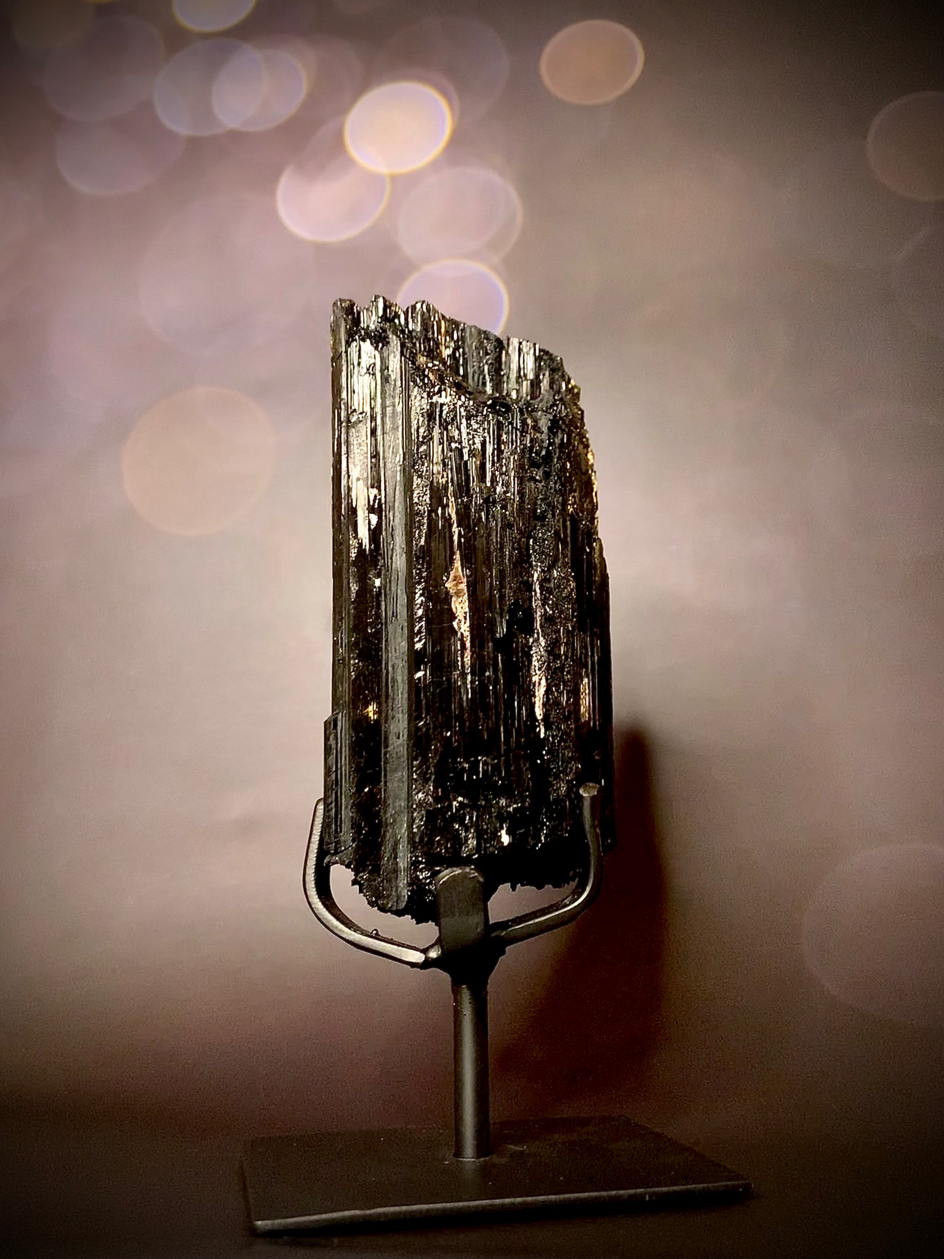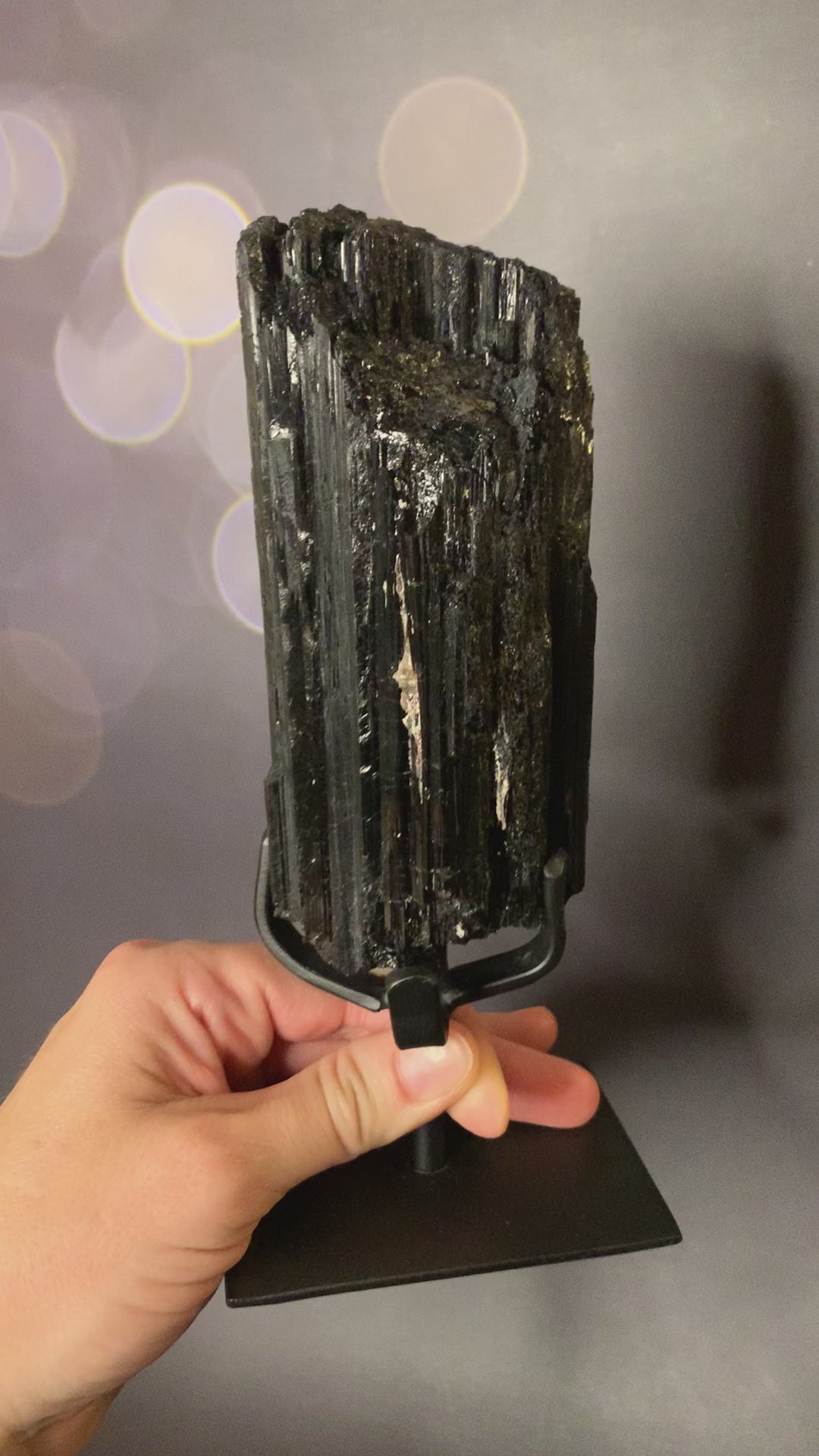 This type of Black Tourmaline is from Brazil and it is more dry and brittle in nature. There will be fallout whenever handled or transported.