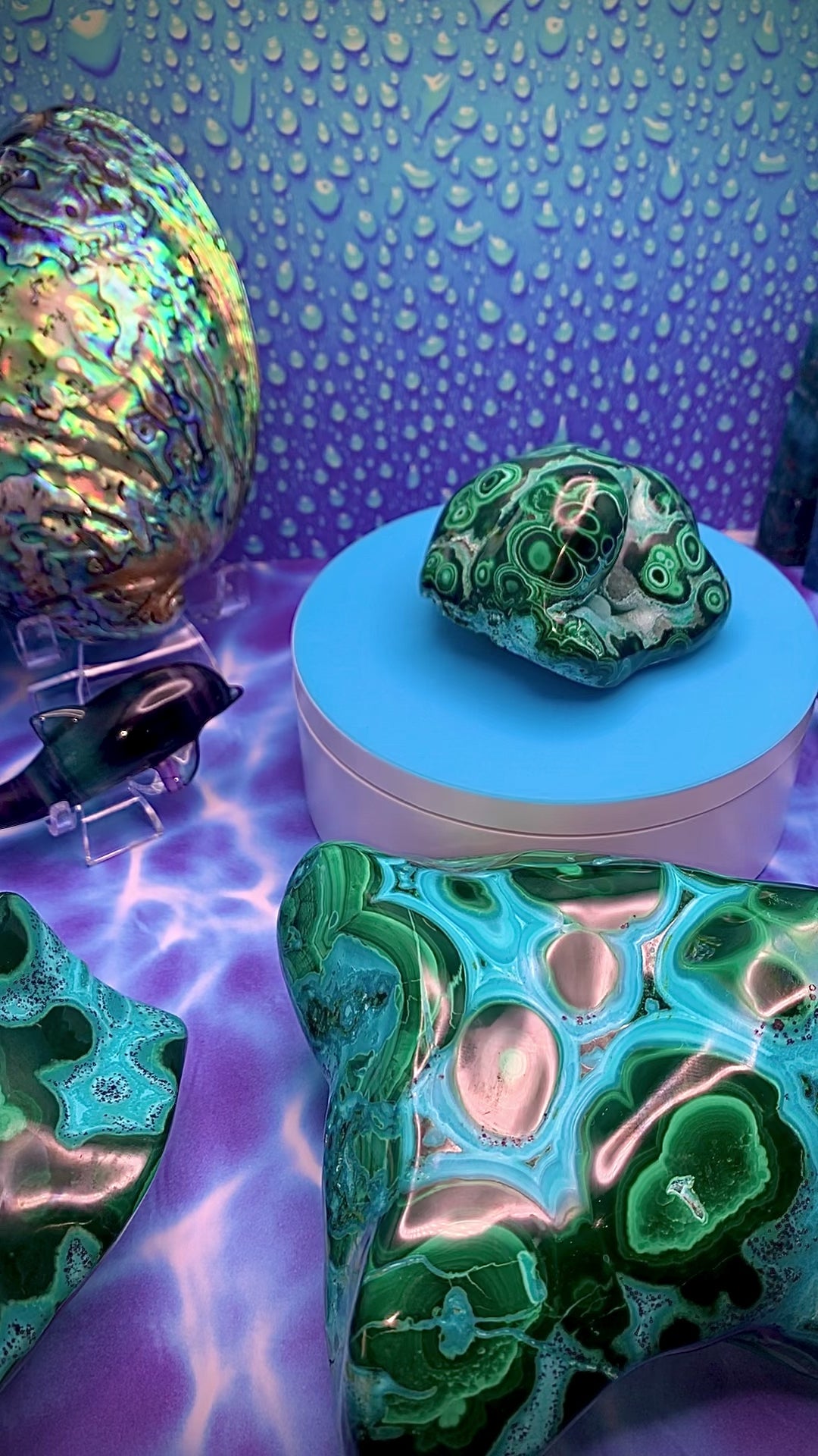 It encourages risk taking & change and cleanses us of negativity and pollutants. Malachite is able to bring harmony and abundance to the heart and clearly shows us where we are experiencing blockages and the actions required to bring about the change we need to move forward.