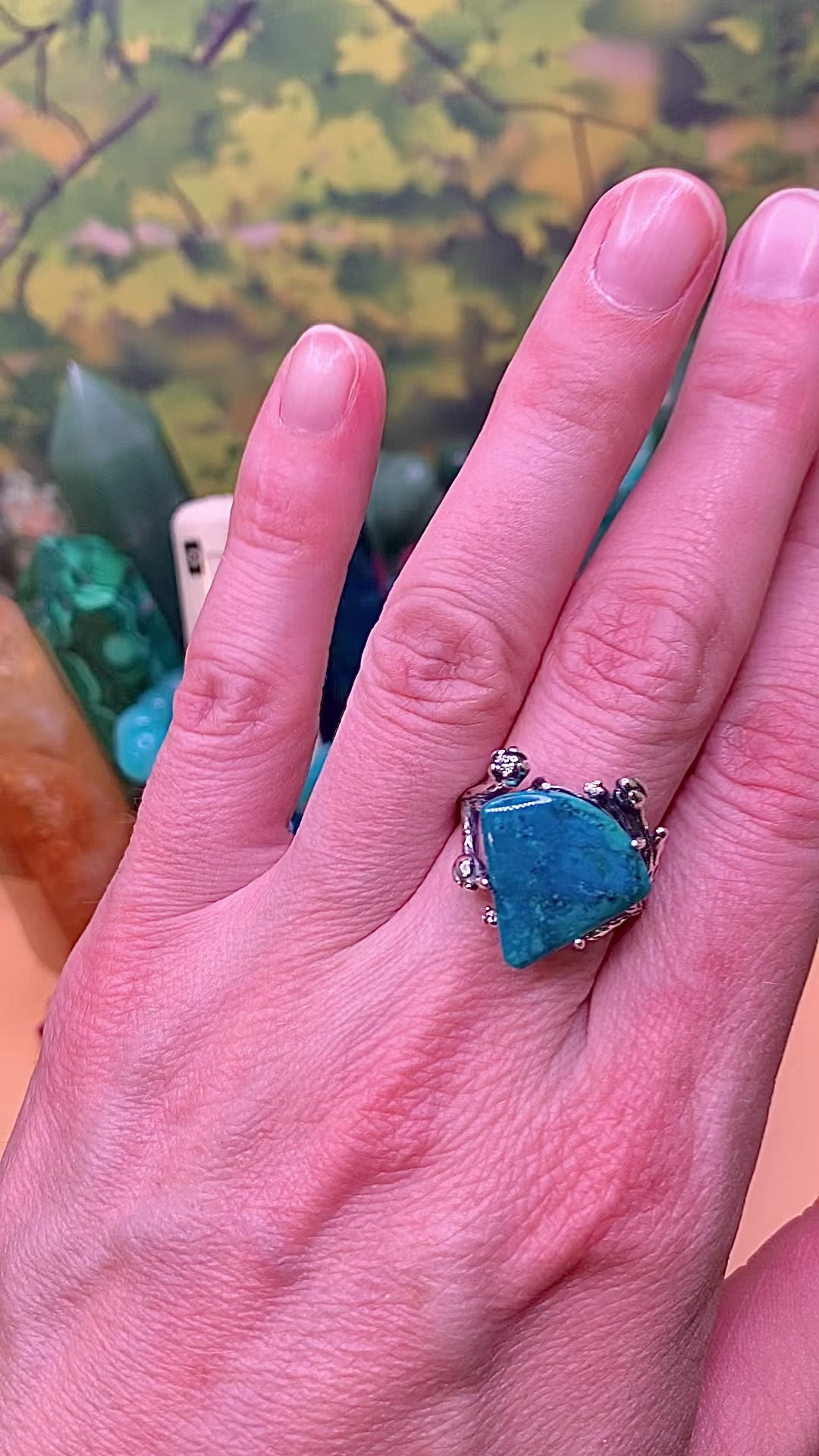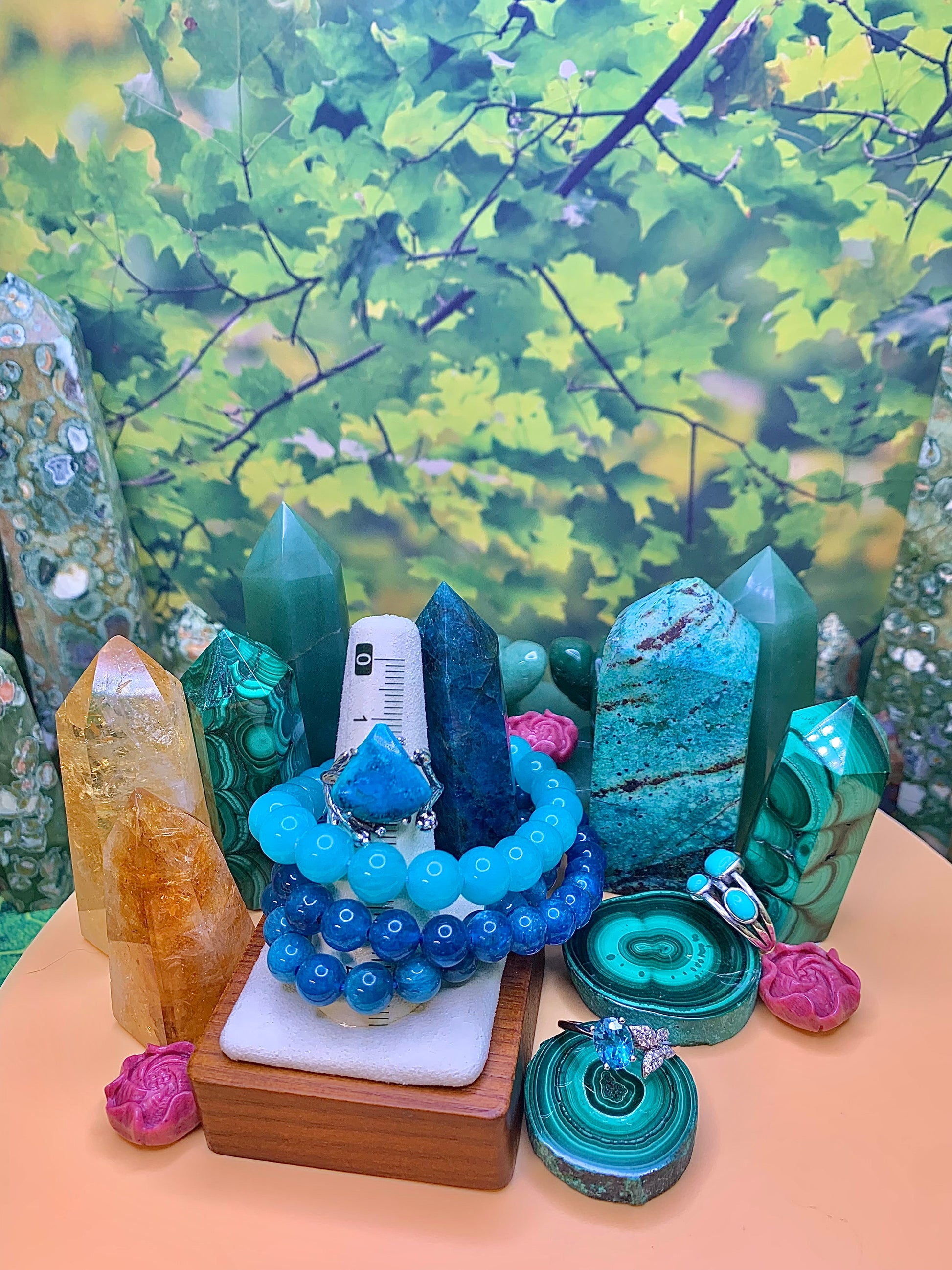 Chrysocolla is a stone of calm and inspiration. It cleanses & re-energizes all the Chakras while drawing out guilt, it has the capacity to heal heartache and increases our ability to love. It is known to improve communication and opens psychic vision while encouraging self awareness and inner balance.