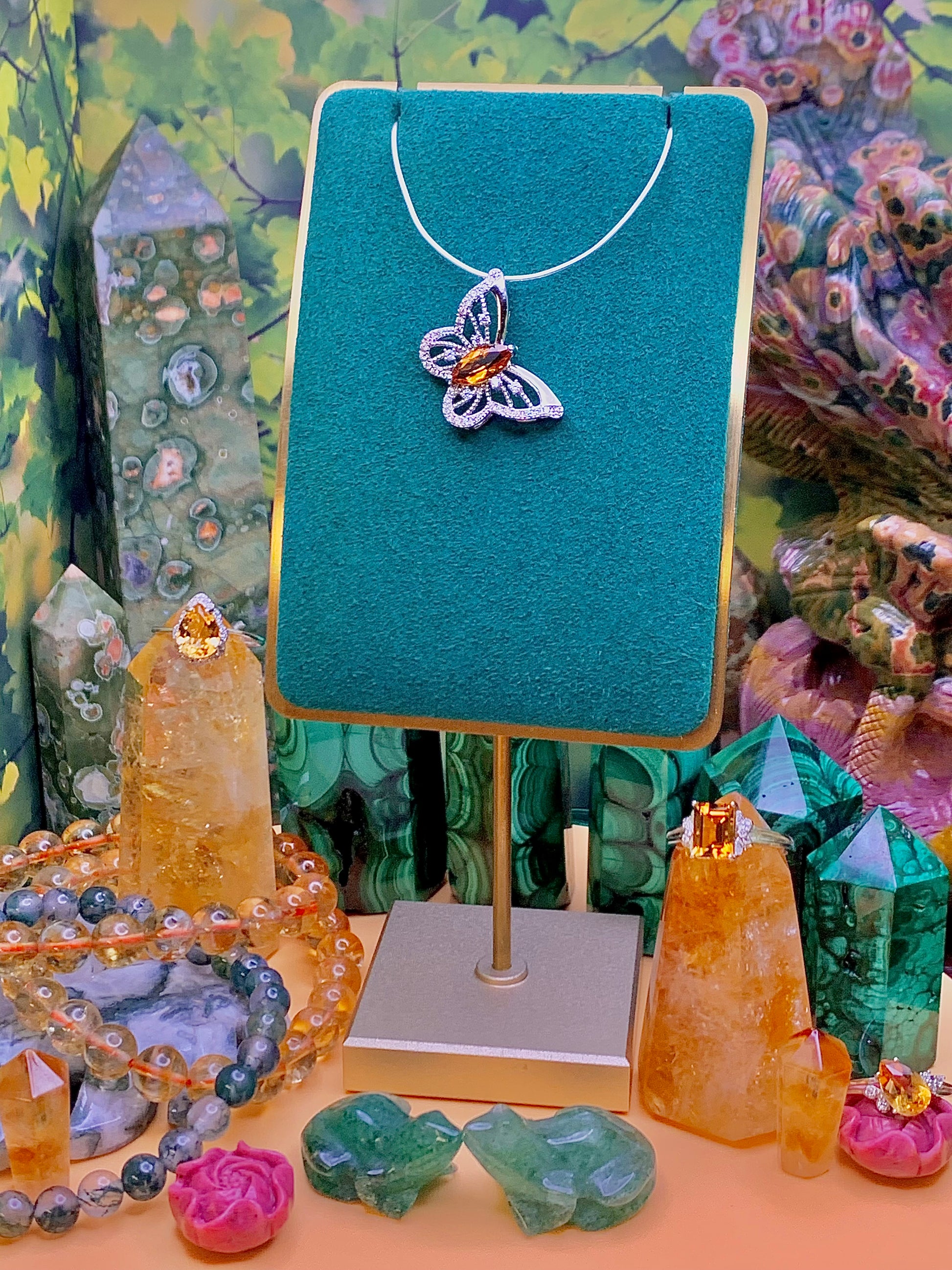 Citrine Butterfly 🦋 Pendant in Sterling Silver with Cubic Zirconia accents.
