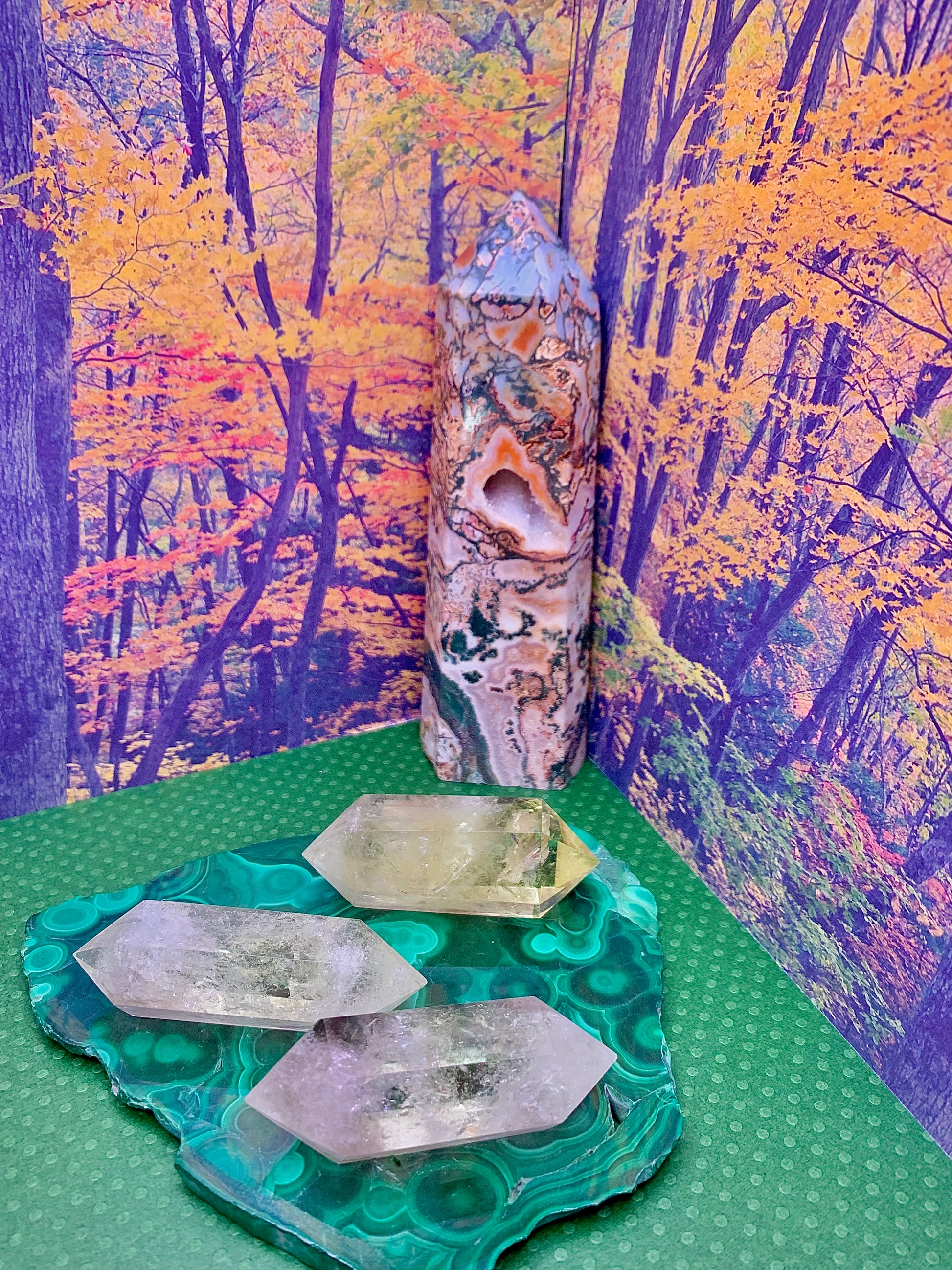 in healing layouts, place on the forehead to increase creative inspiration or over the solar plexus area to clear tension from the upper abdomen