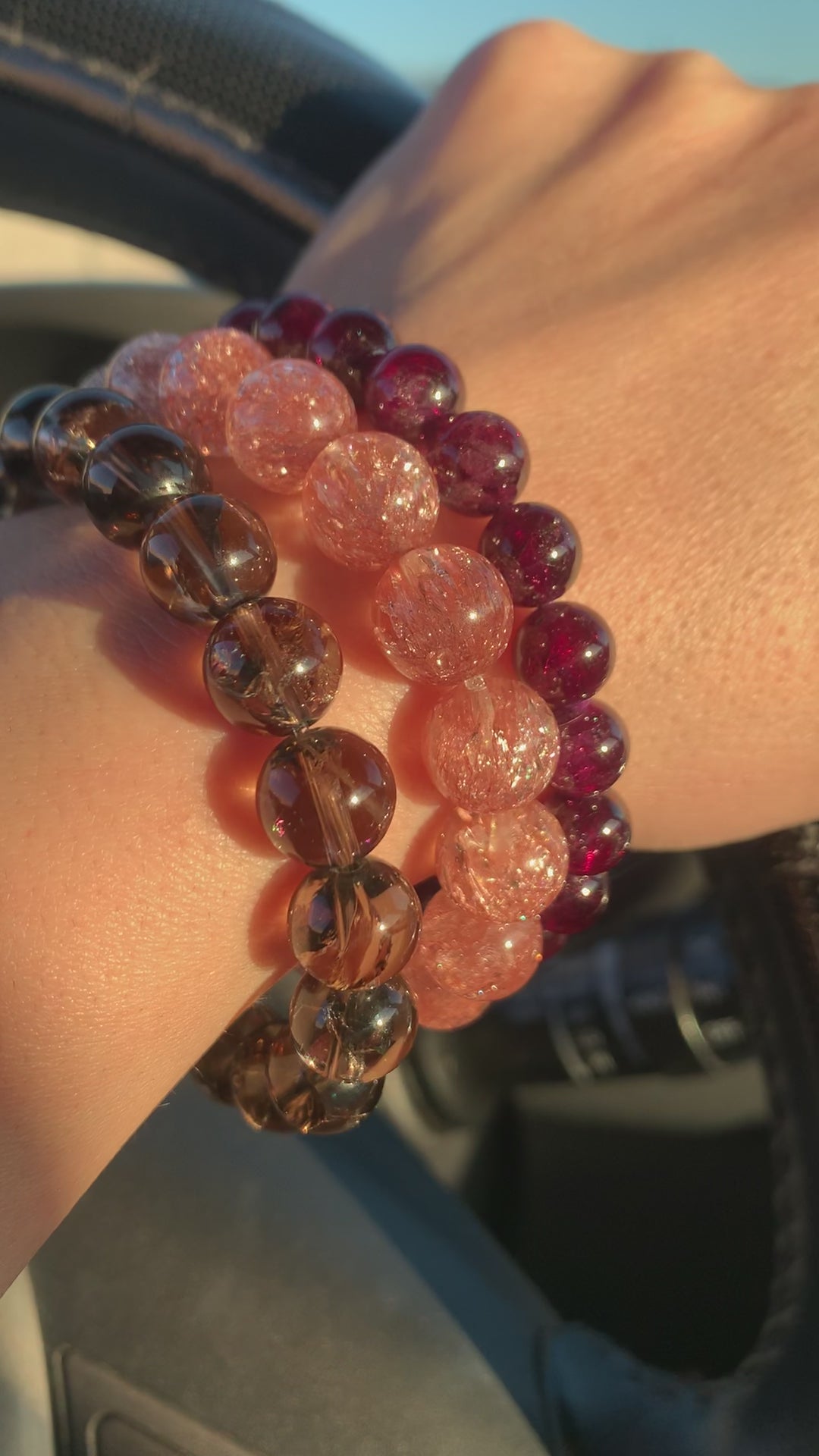 Copper Quenched Clear Quartz 8mm Round Bead Bracelet.