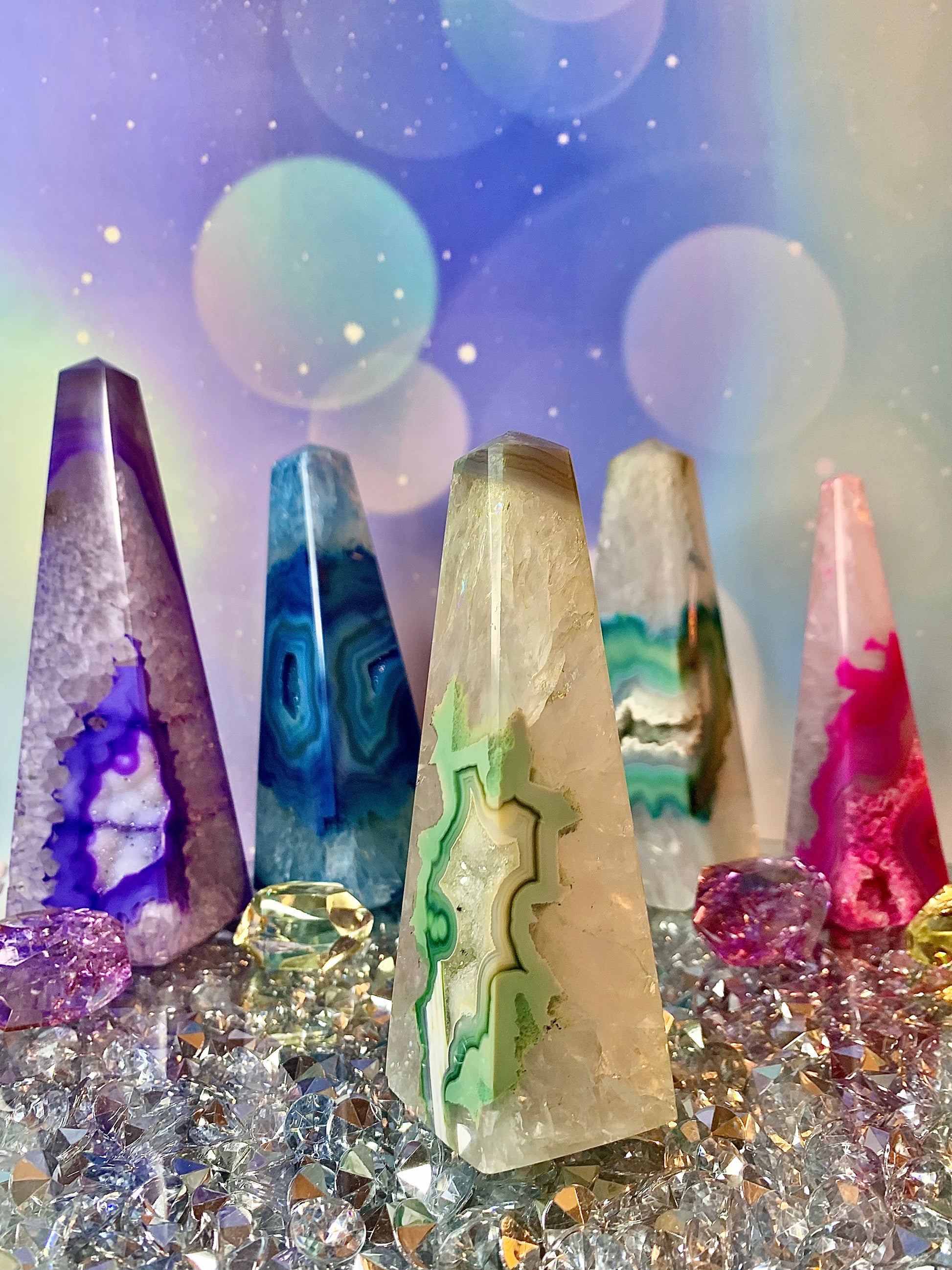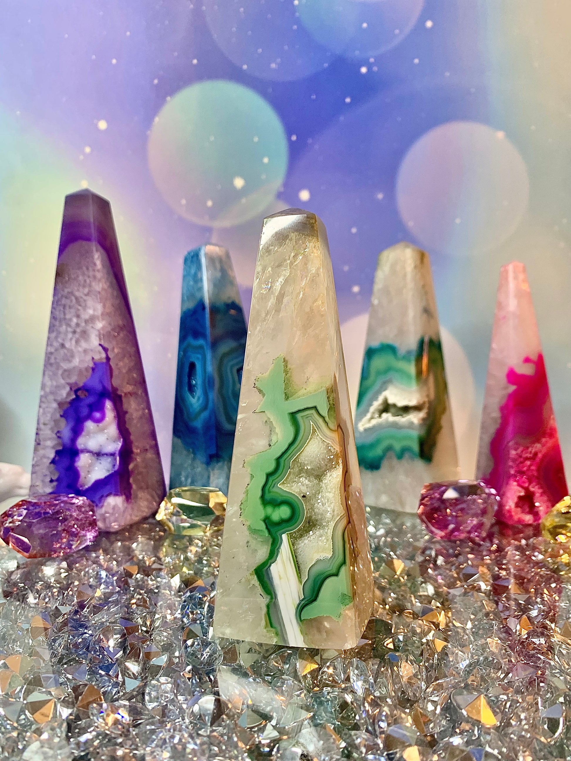 This natural agate obelisk is sourced and carved in Brazil 🇧🇷 and enhanced with green dye for an extra special pop of color!