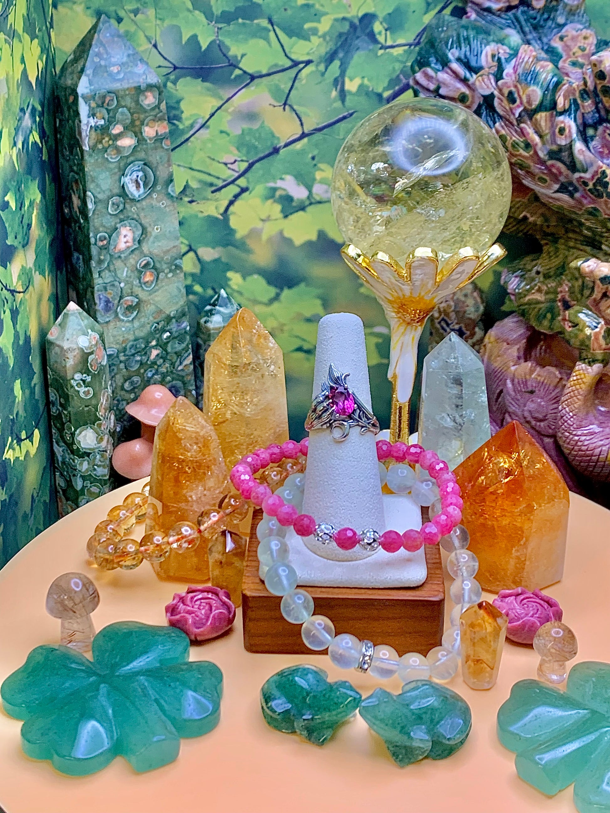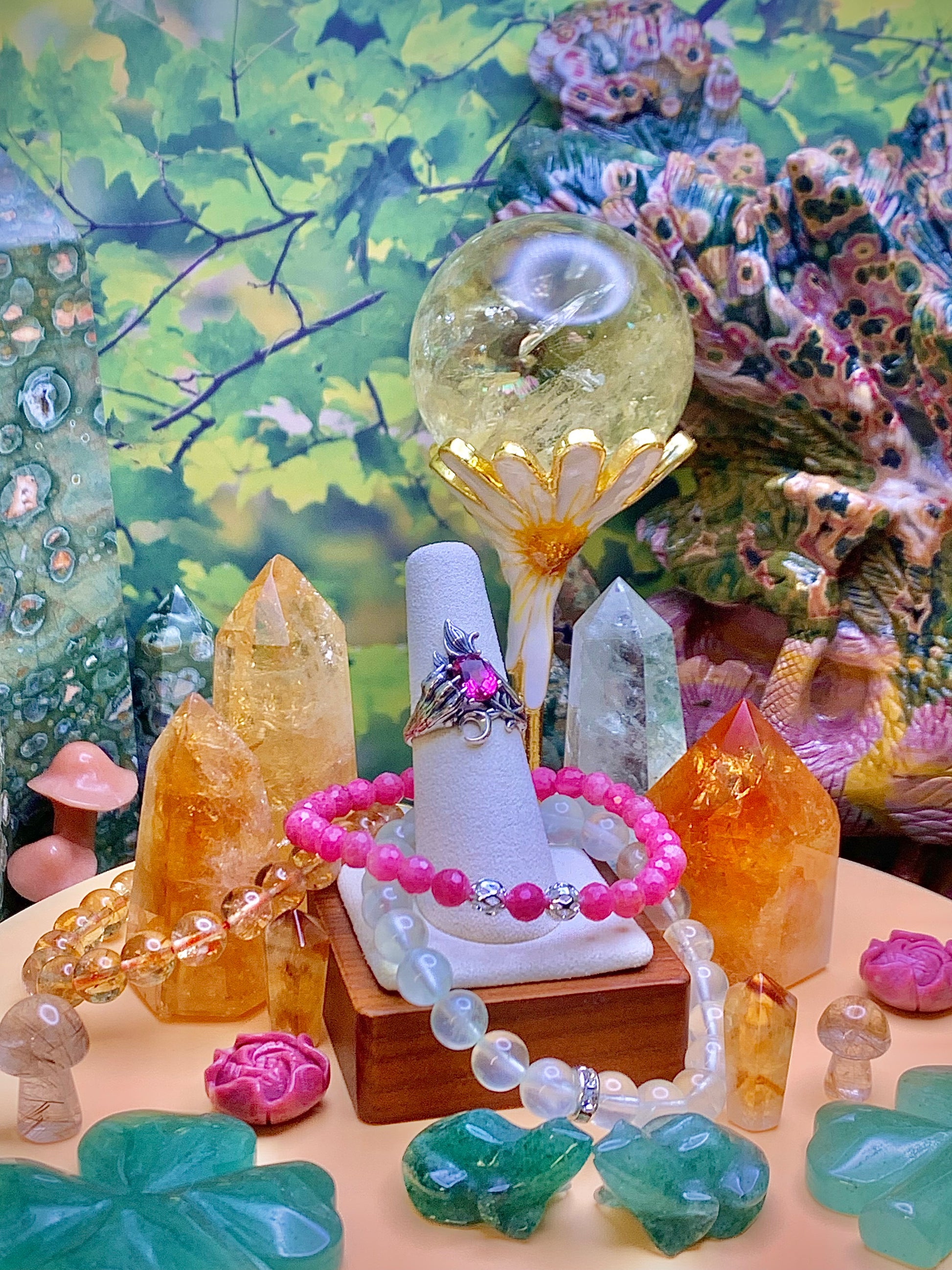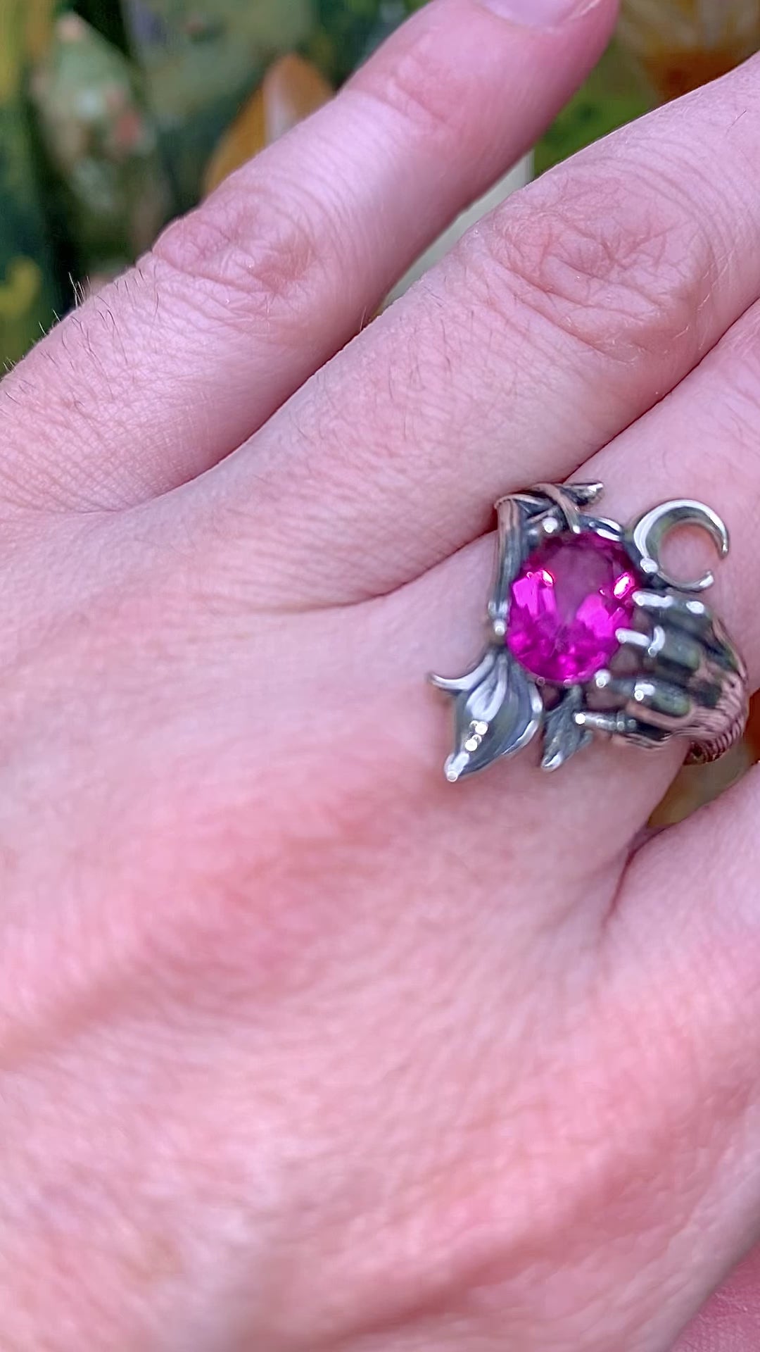 Pink Topaz Cat Paw 🐾 & Crescent 🌙Moon Ring in Sterling Silver