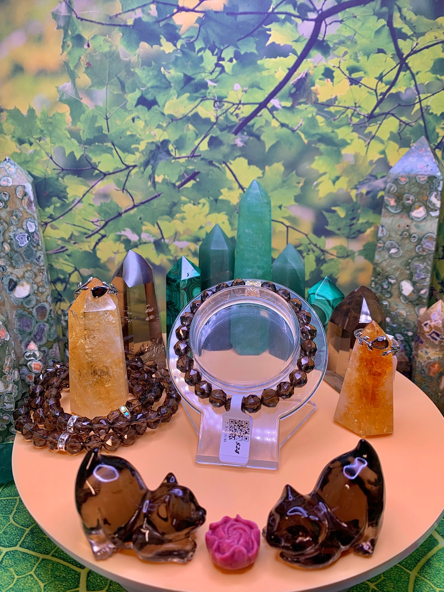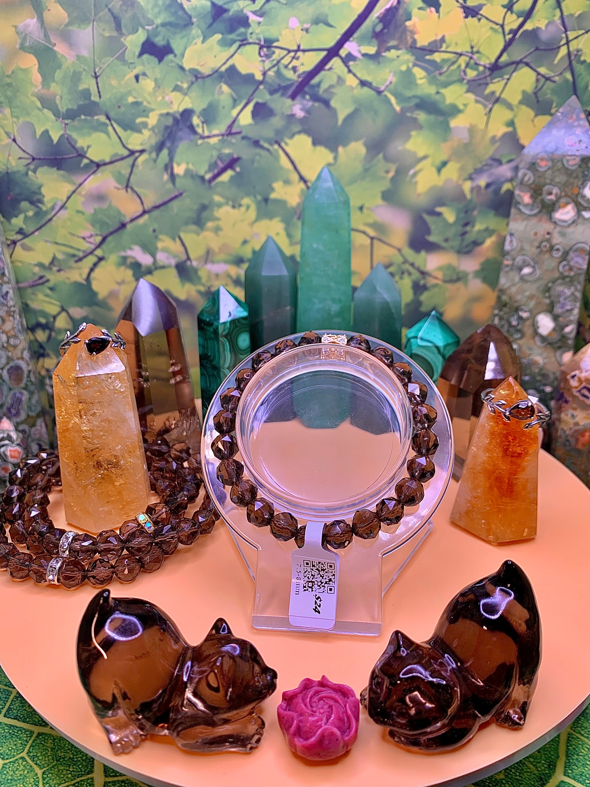 Smoky Quartz Faceted Bead Bracelet 8-8.5mm with Gold Spacer