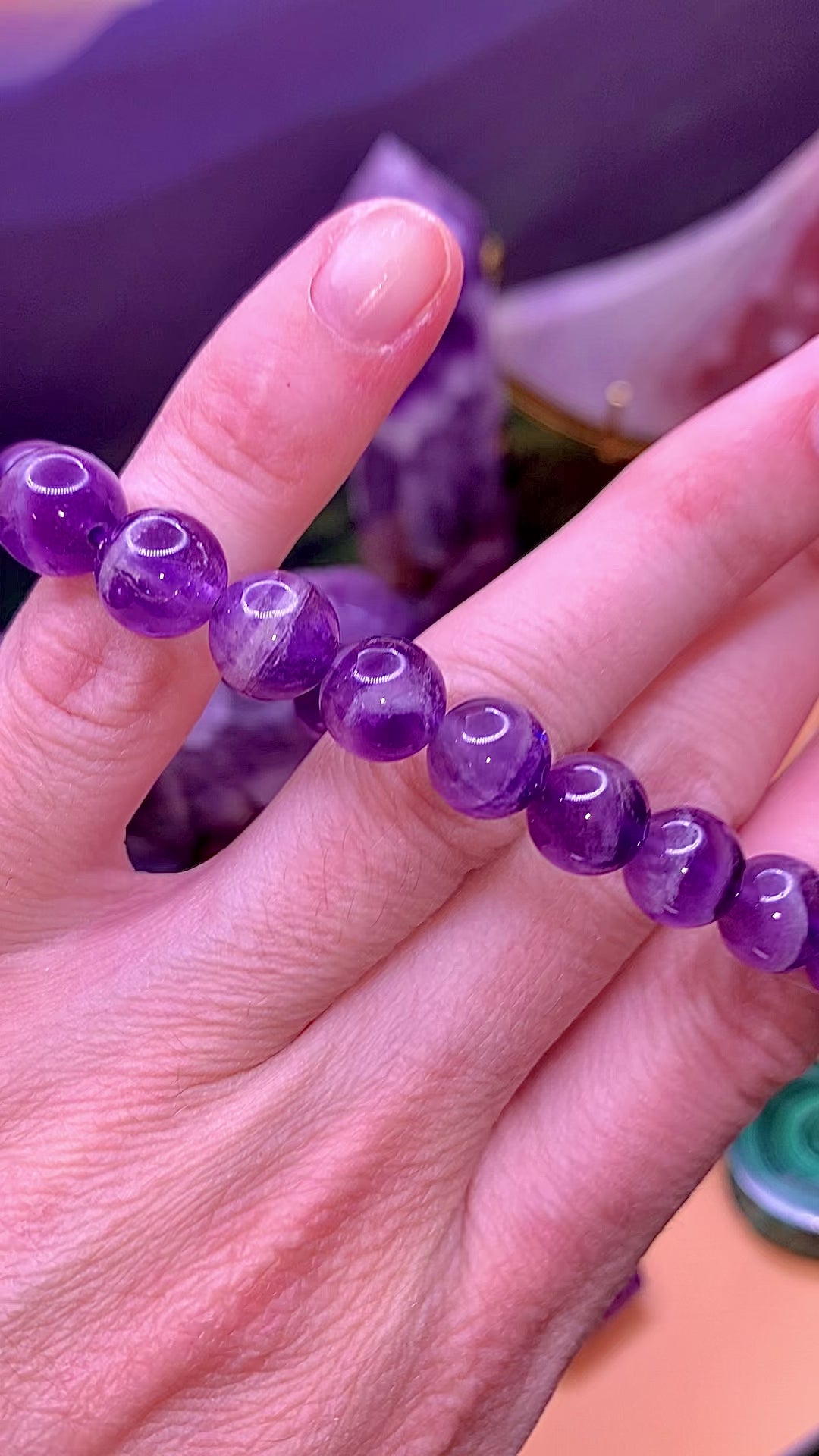 Dream Amethyst Round Bead Bracelet 7-8mm