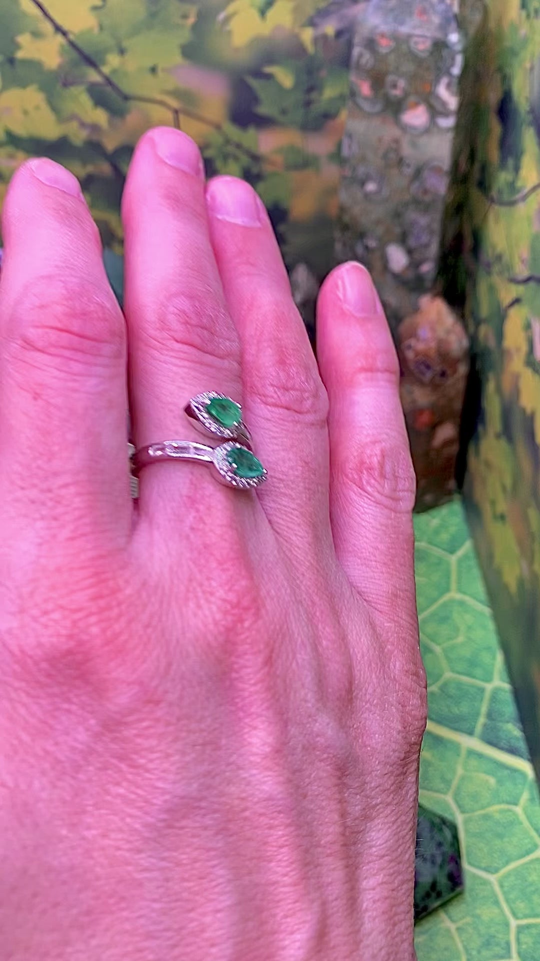 Emerald Double Stone Ring in Sterling Silver