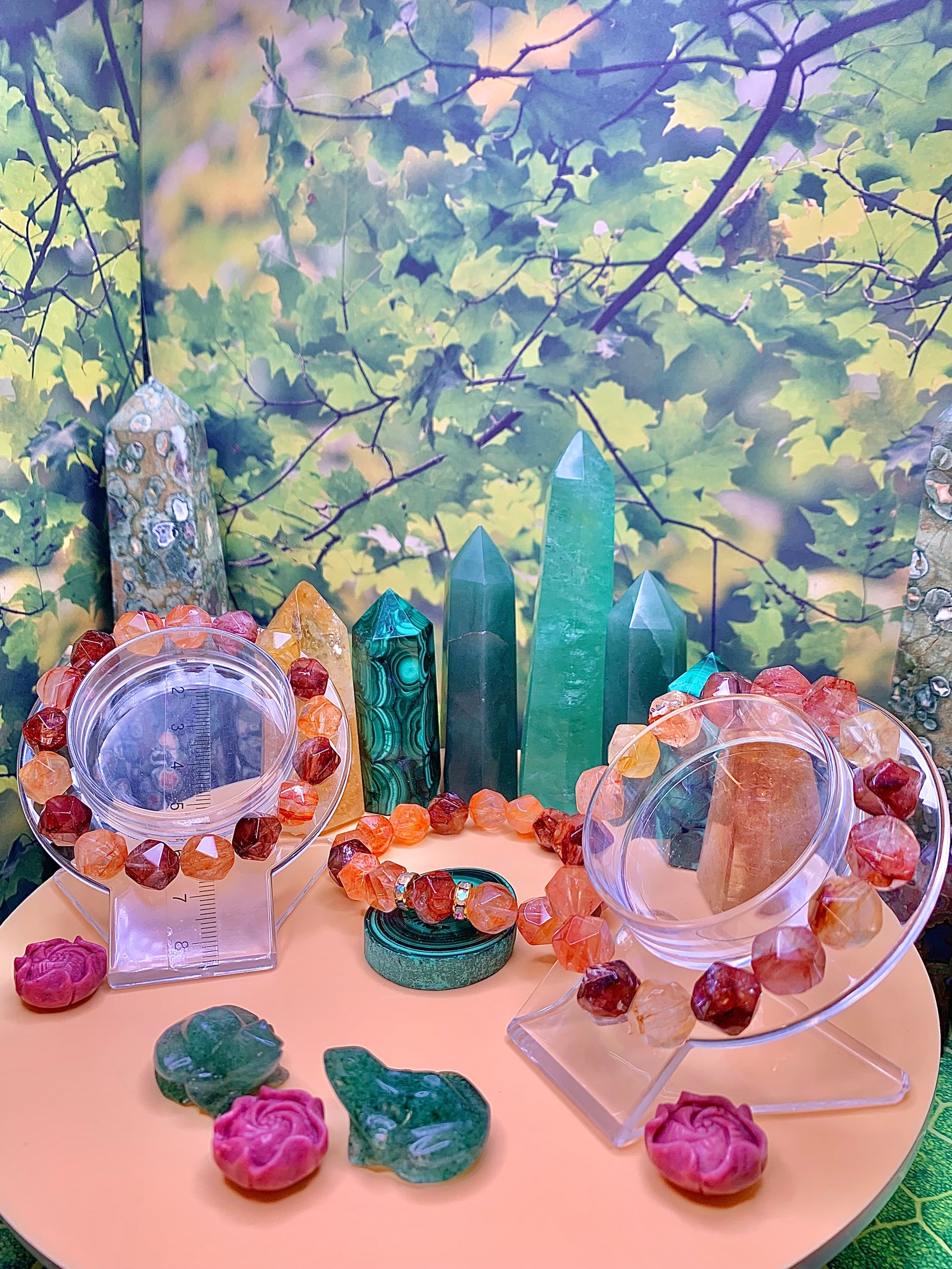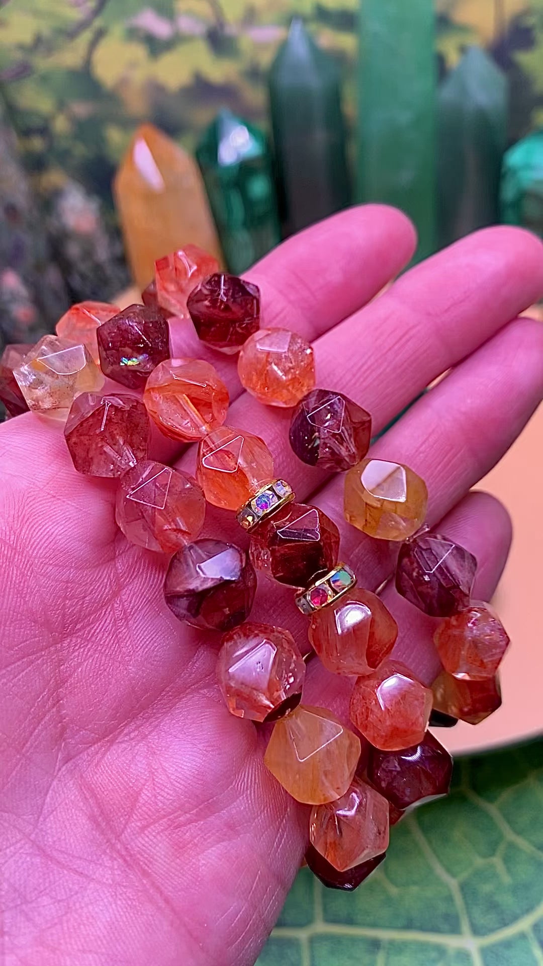 Faceted Fire 🔥 Quartz Bracelet 11mm with Gold Rhinestone Spacers