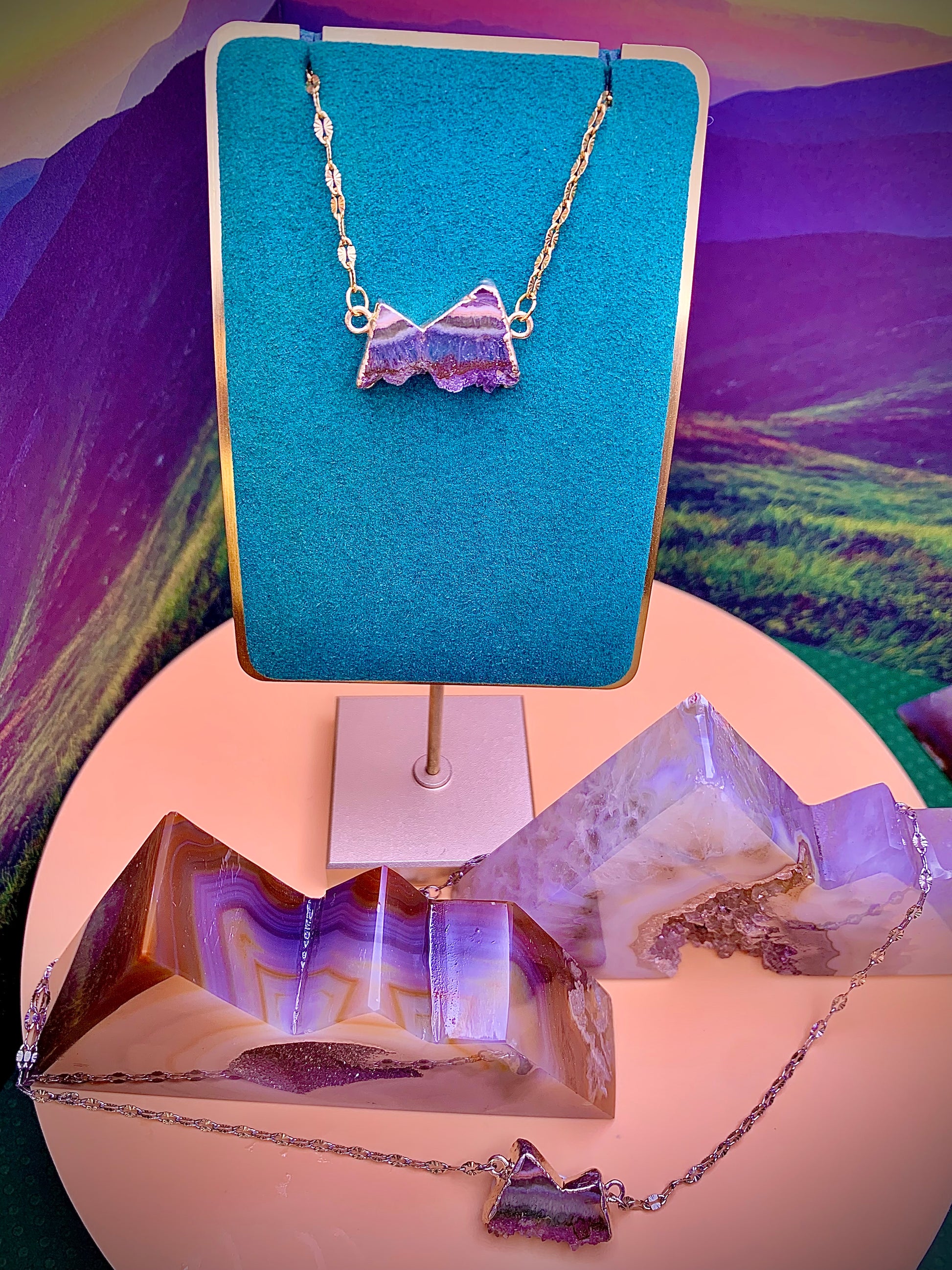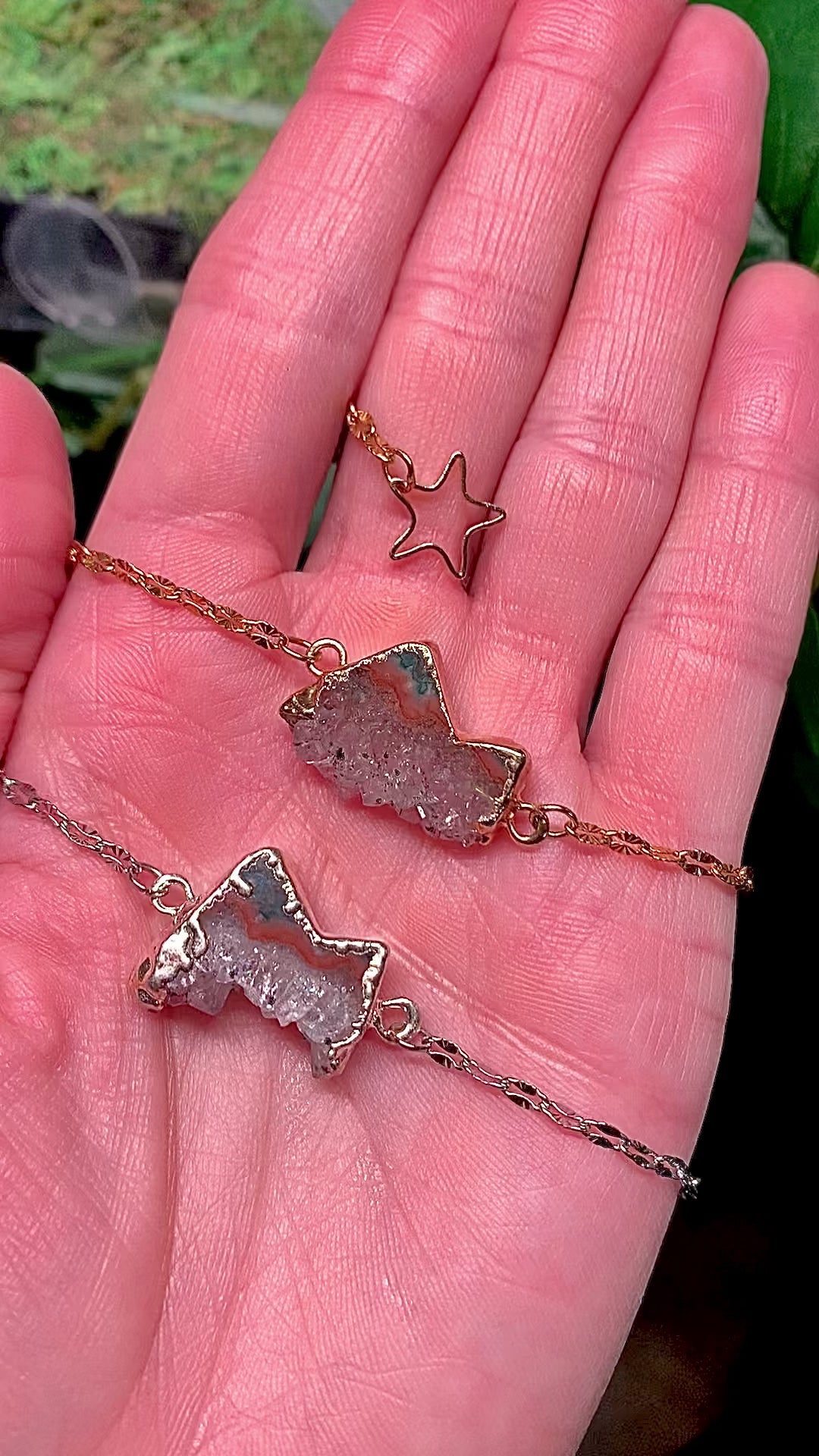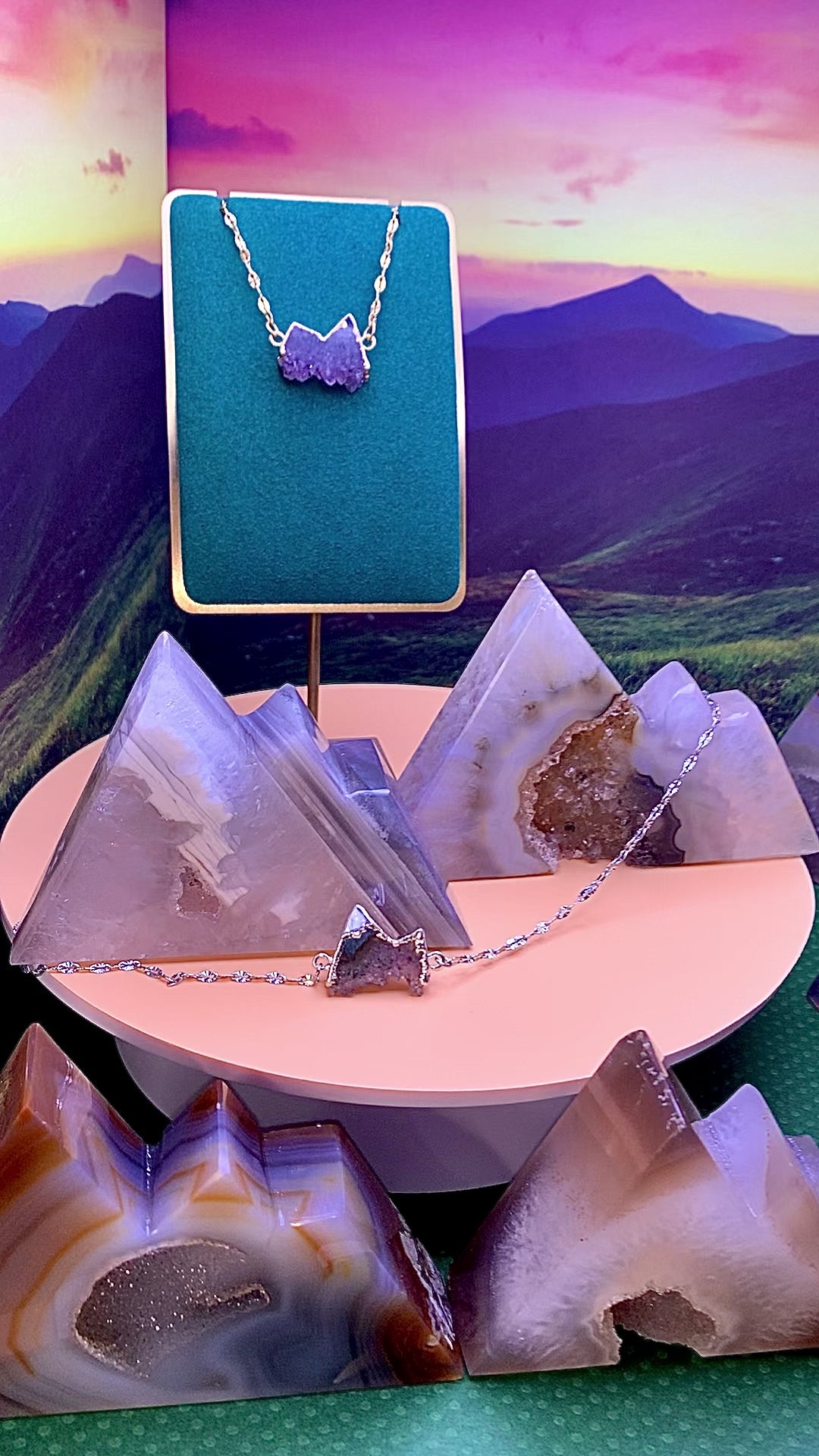 Gold Plated Druzy Agate Mountain ⛰️ Pendant on Gold Plated Chain.