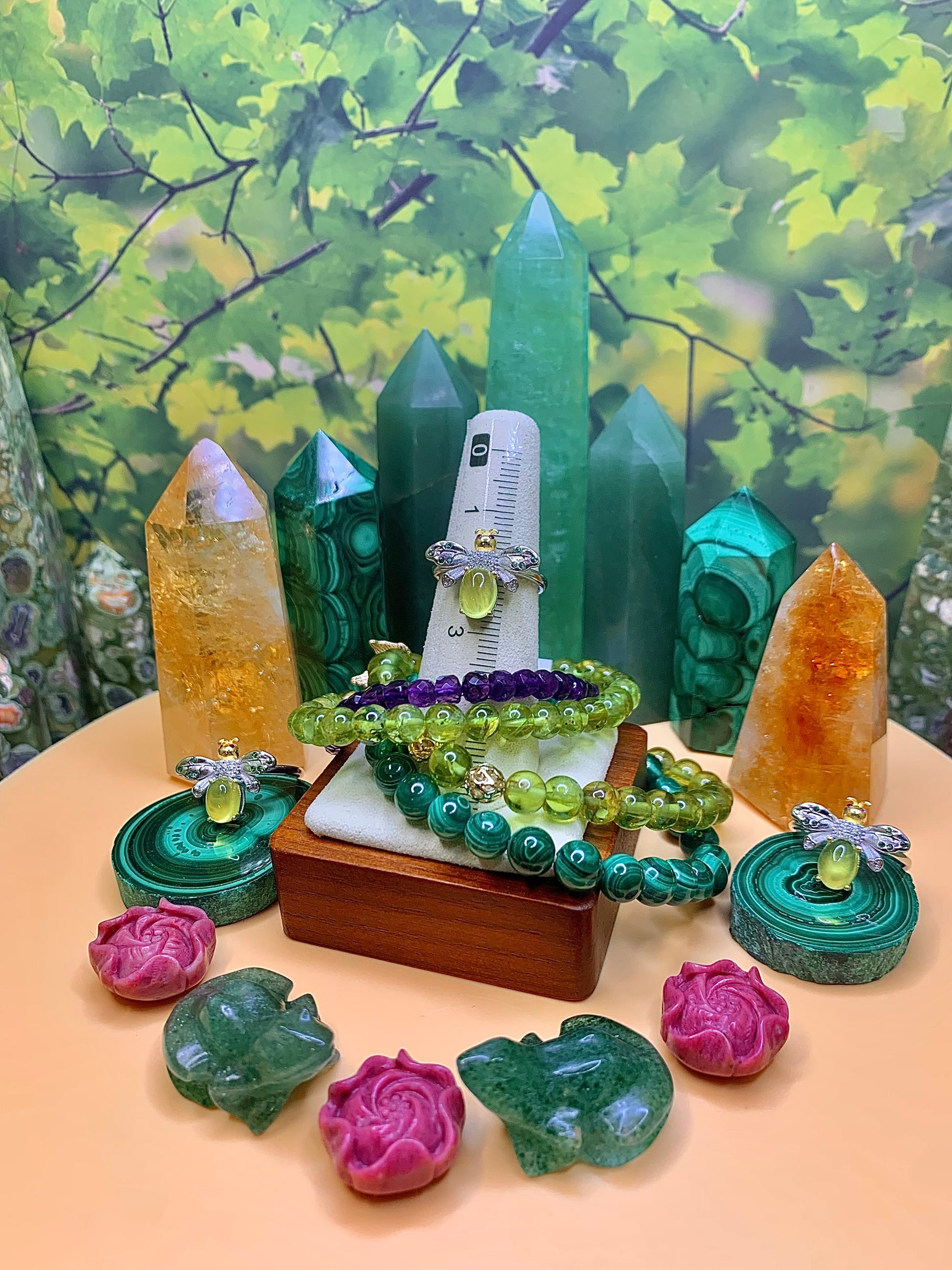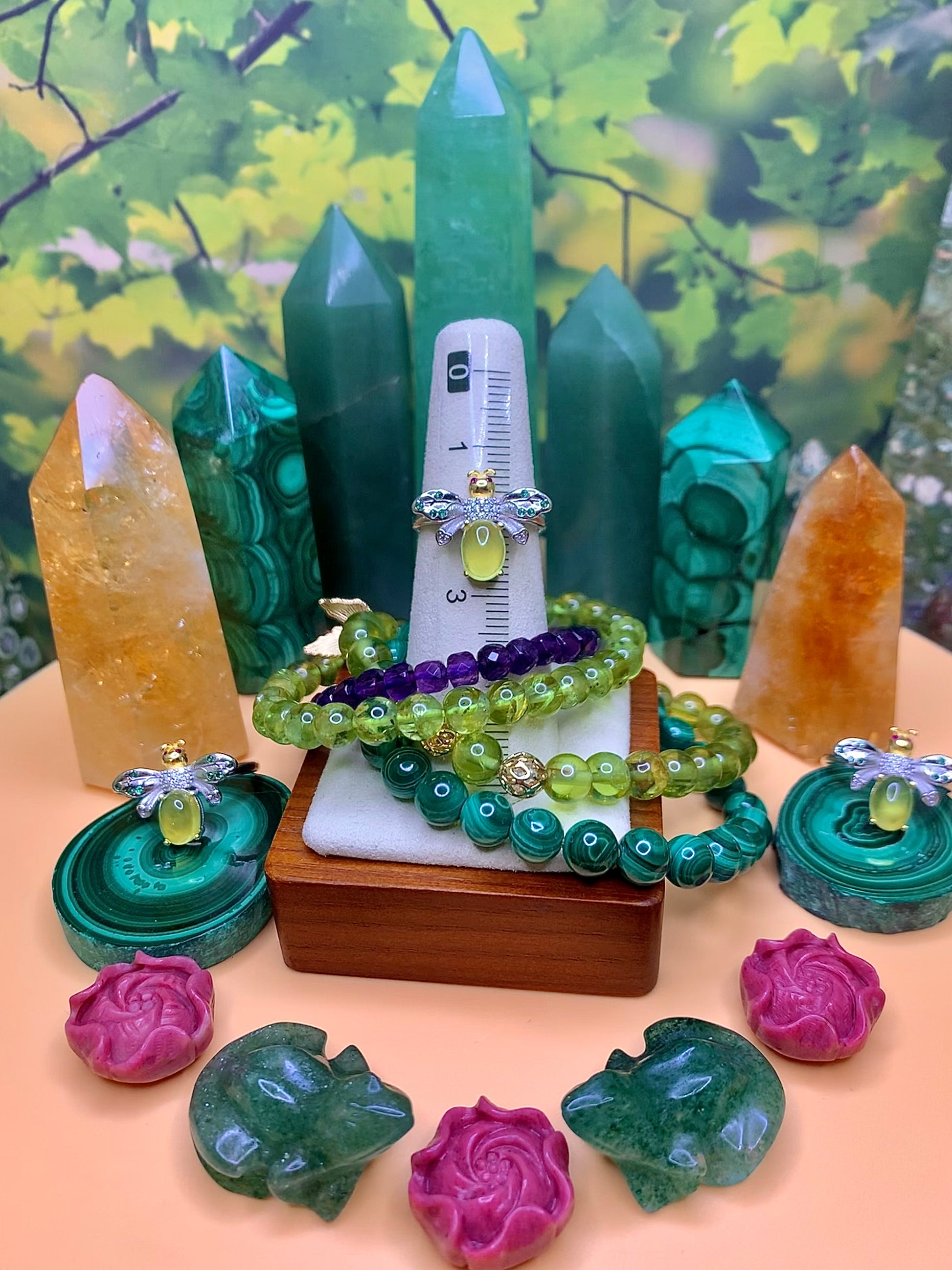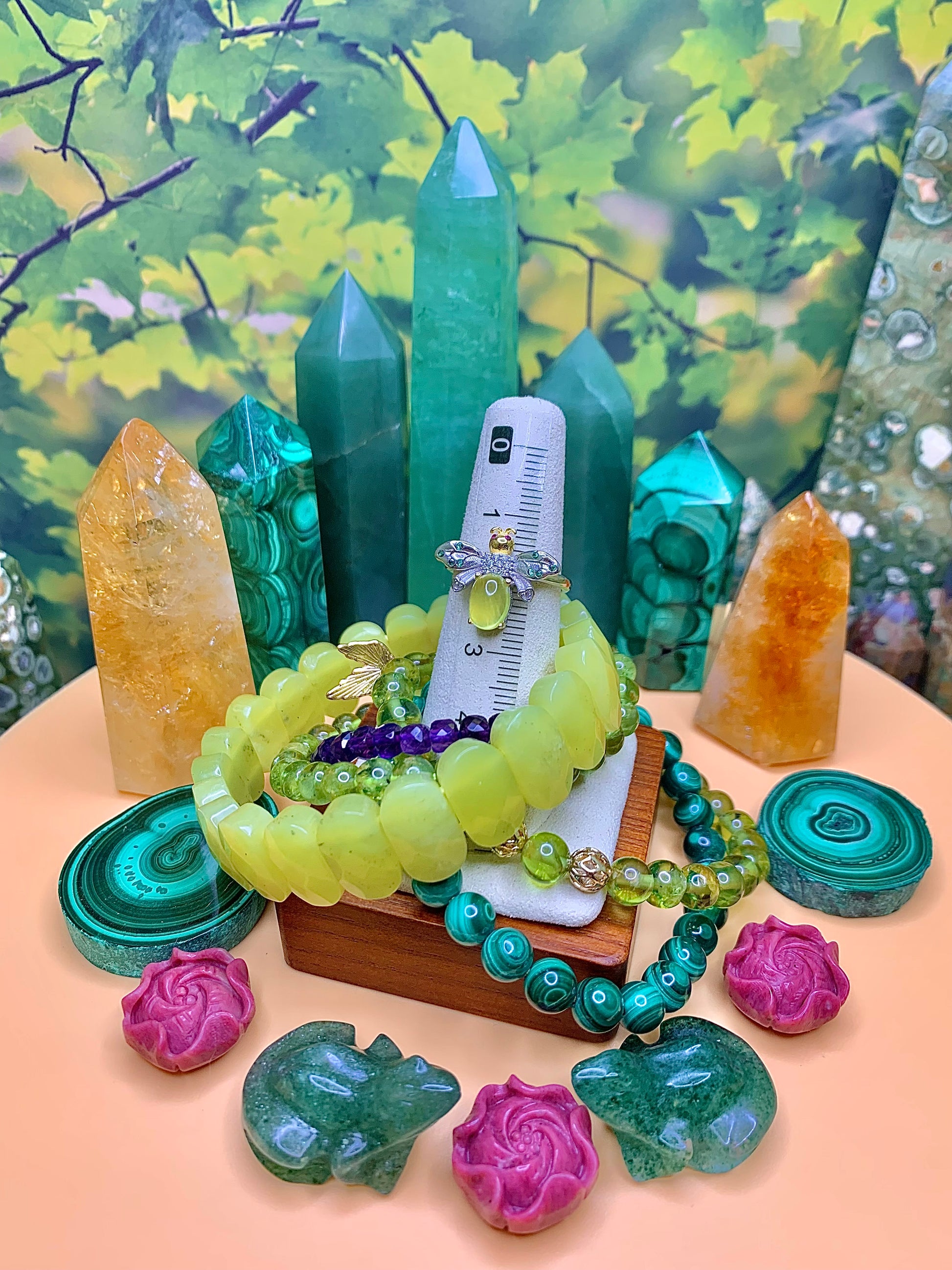 Golden Prehnite Bee 🐝 Ring in Sterling Silver & Enamel