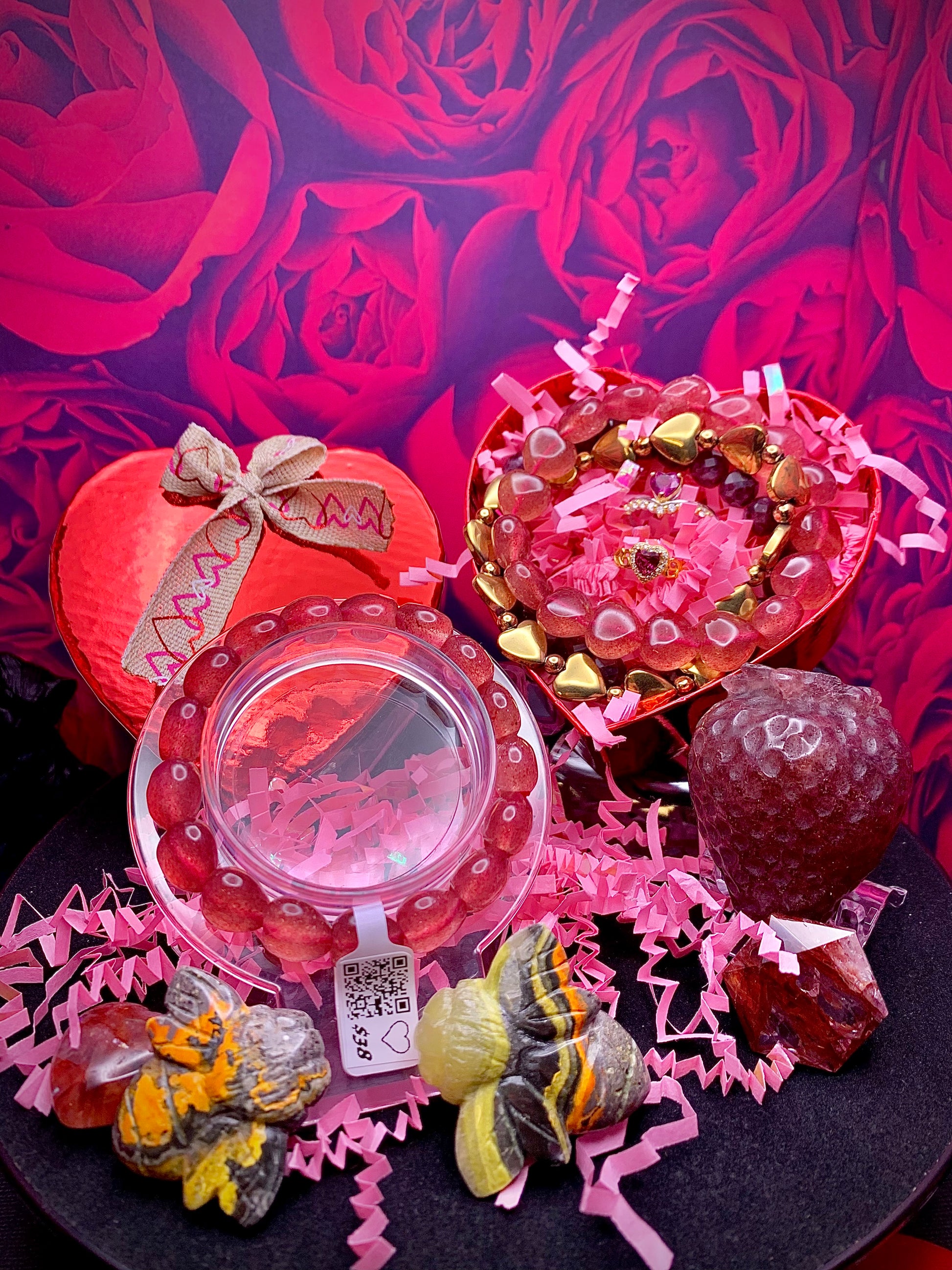 Strawberry Quartz is an uplifting, joyous stone that allows us to celebrate the gift that is life. It embodies the energies of compassion and kindness and inspires self healing and self nurturing by promoting a powerful bond and connection to the universe & Divine realm. It soothes emotions while providing strength through positive & grounding energies.
