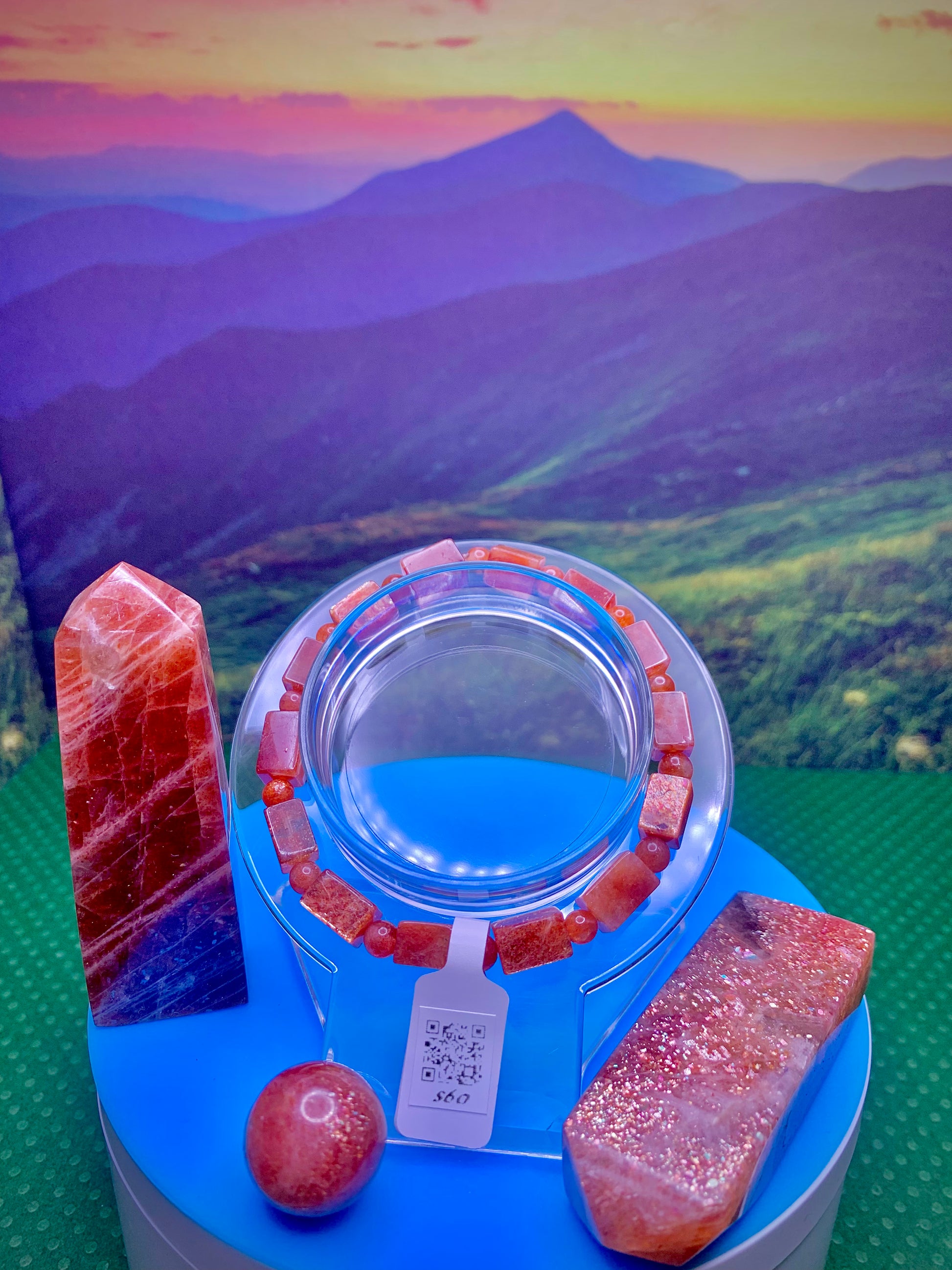 Sunstone allows us to find ways to make our dreams manifest. It clears any energy blockages & instills good energy, heightens intuition and allows our true self to shine through happily.