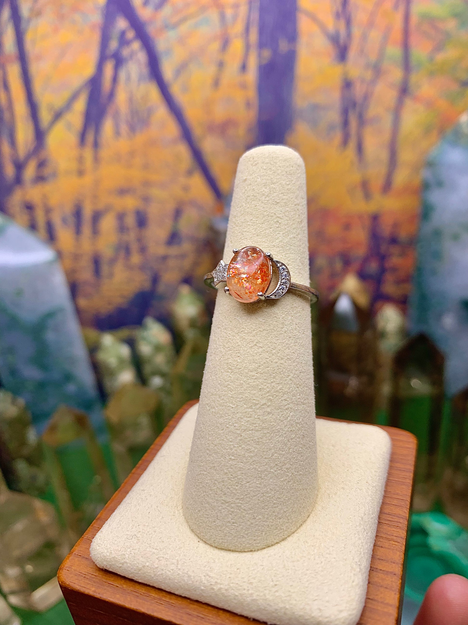 Golden Sunstone Ring in Sterling Silver with Moon & Star