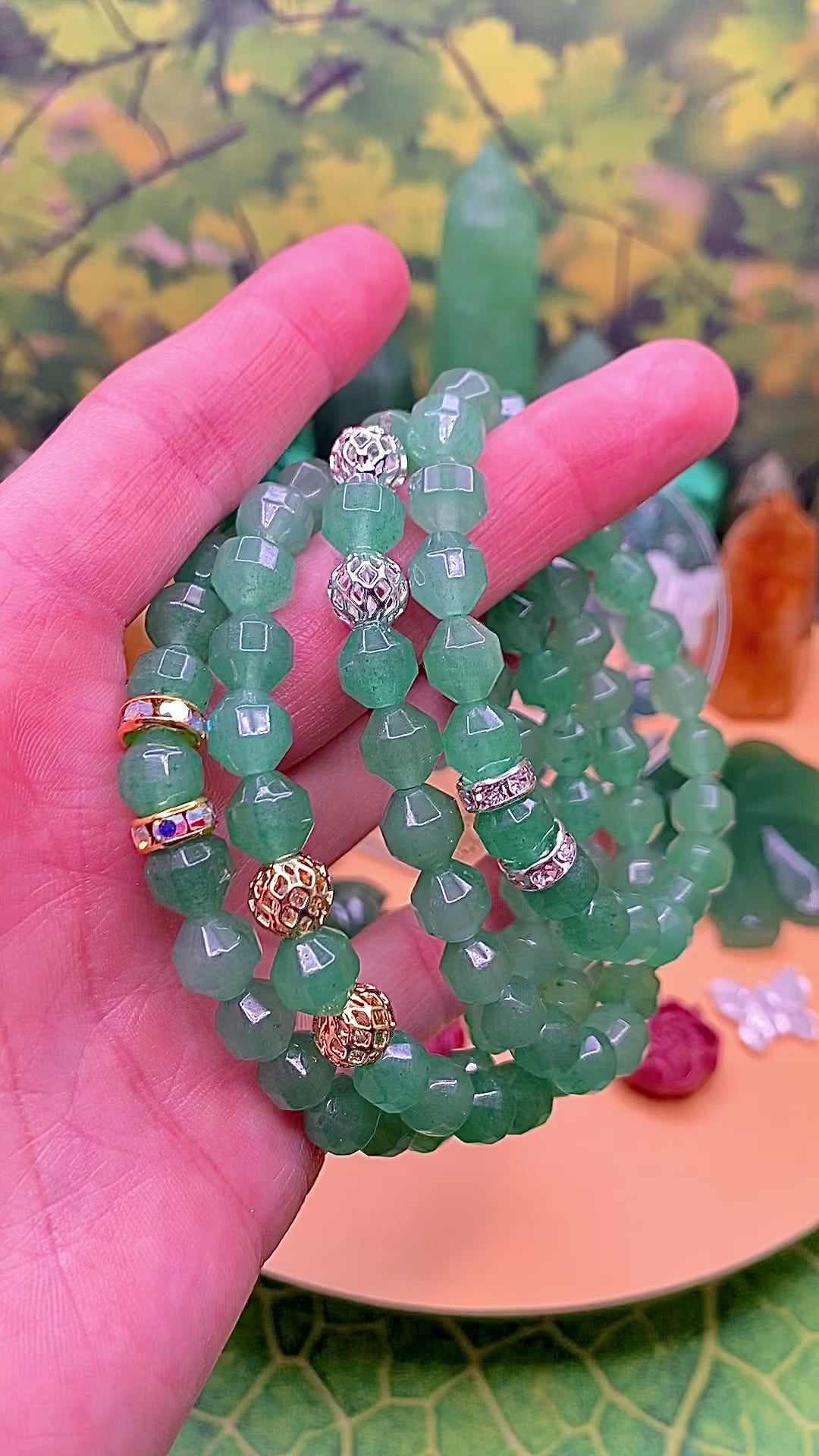 Green Aventurine Faceted 8-8.5mm Bracelet with Gold or Silver Spacers
