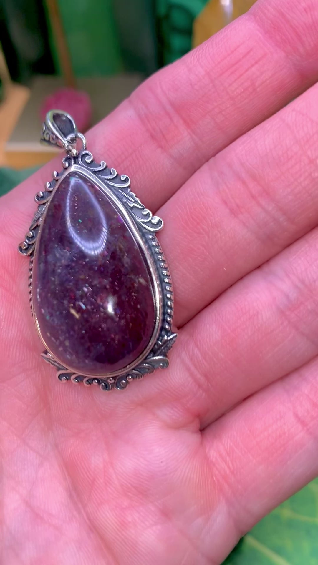 Iolite with Confetti Sunstone Pendant set in Sterling Silver (Vintage Style)