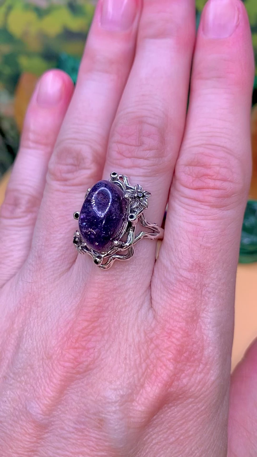 Iolite with Confetti Sunstone Ring in Sterling Silver (Vintage Style)