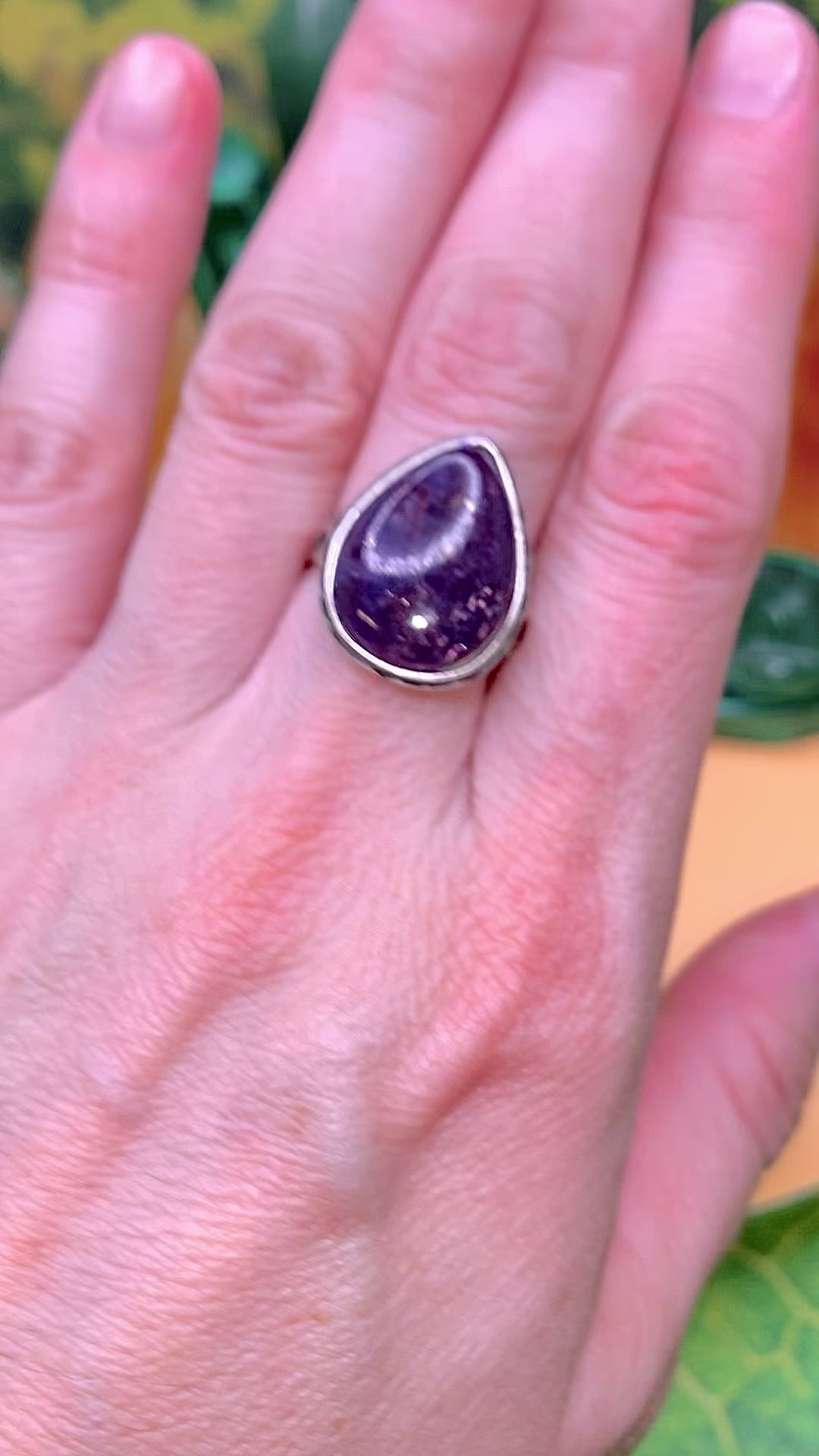 Iolite with Confetti Sunstone Ring in Sterling Silver (Vintage Style)