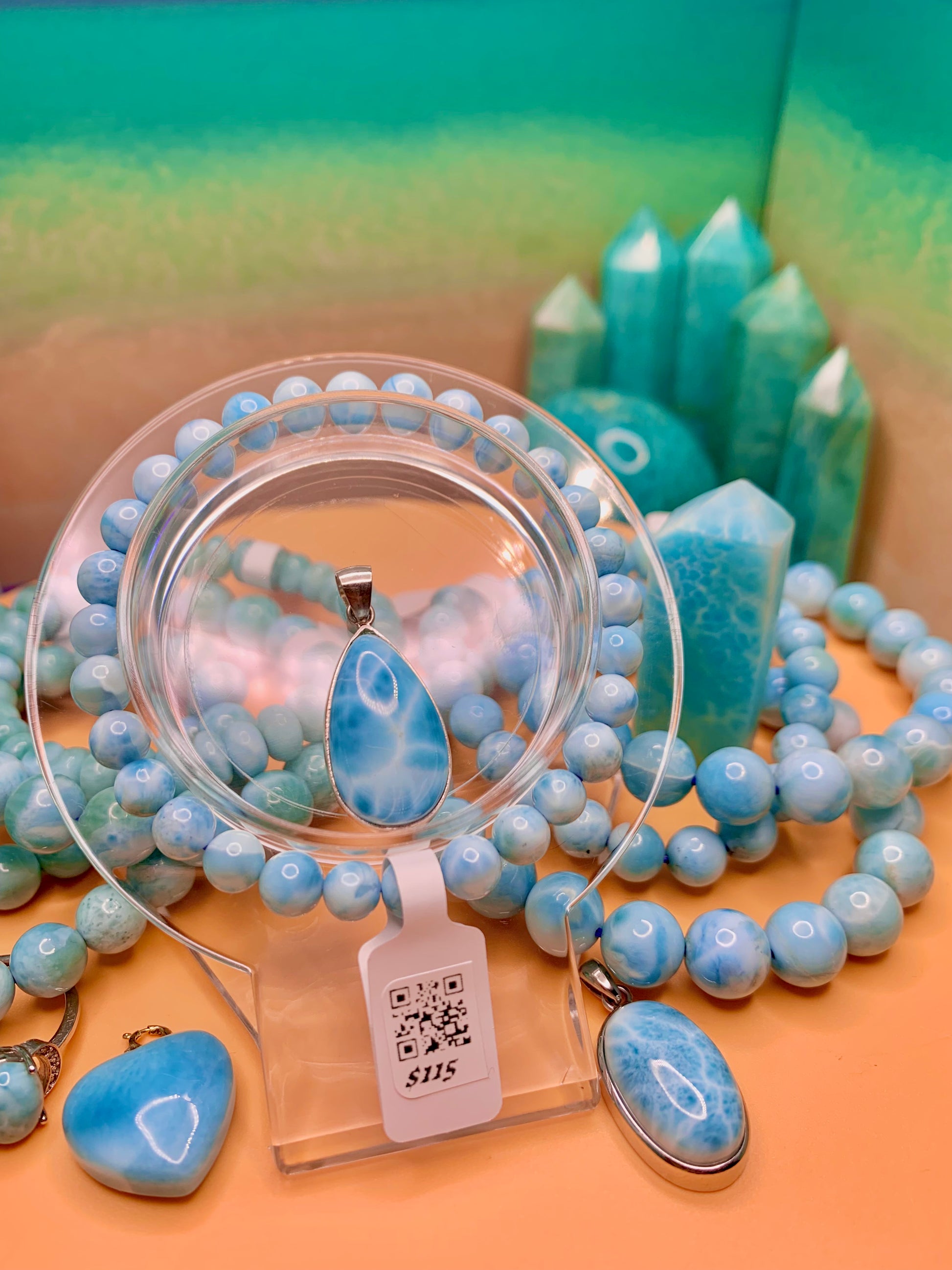 Larimar AAA Round Bead Bracelet 6mm Size 6.5