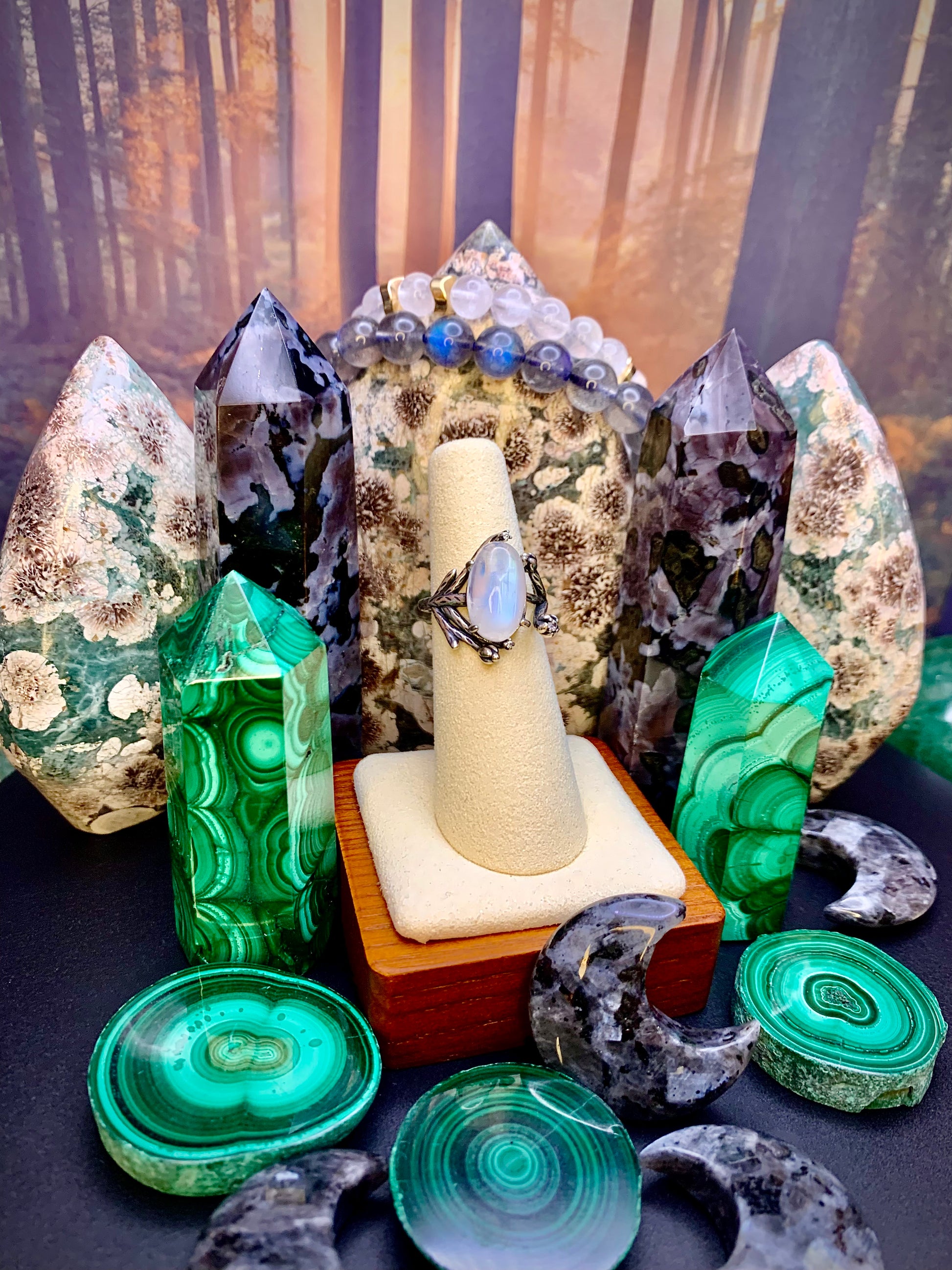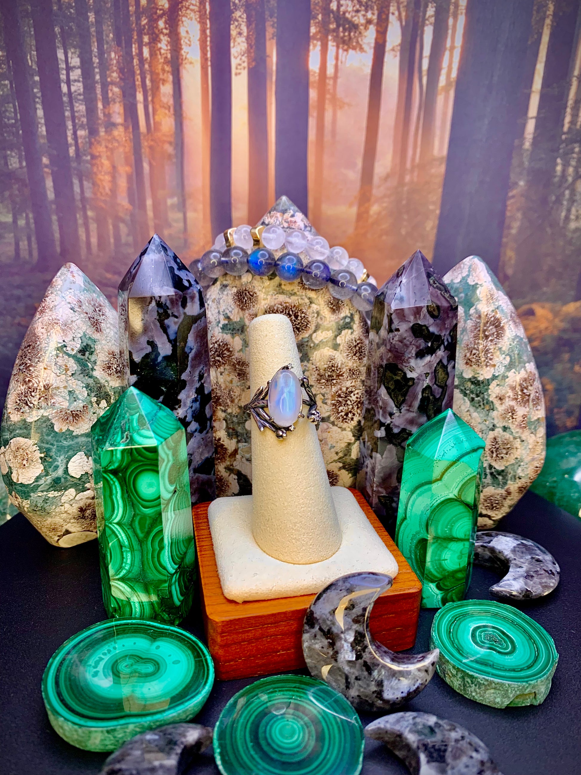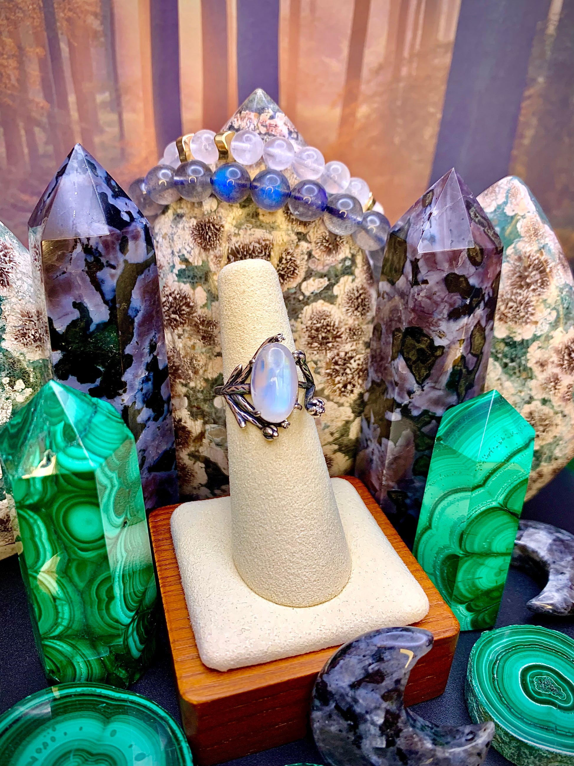 Moonstone Branches & Flowers *Adjustable* Ring in Sterling Silver