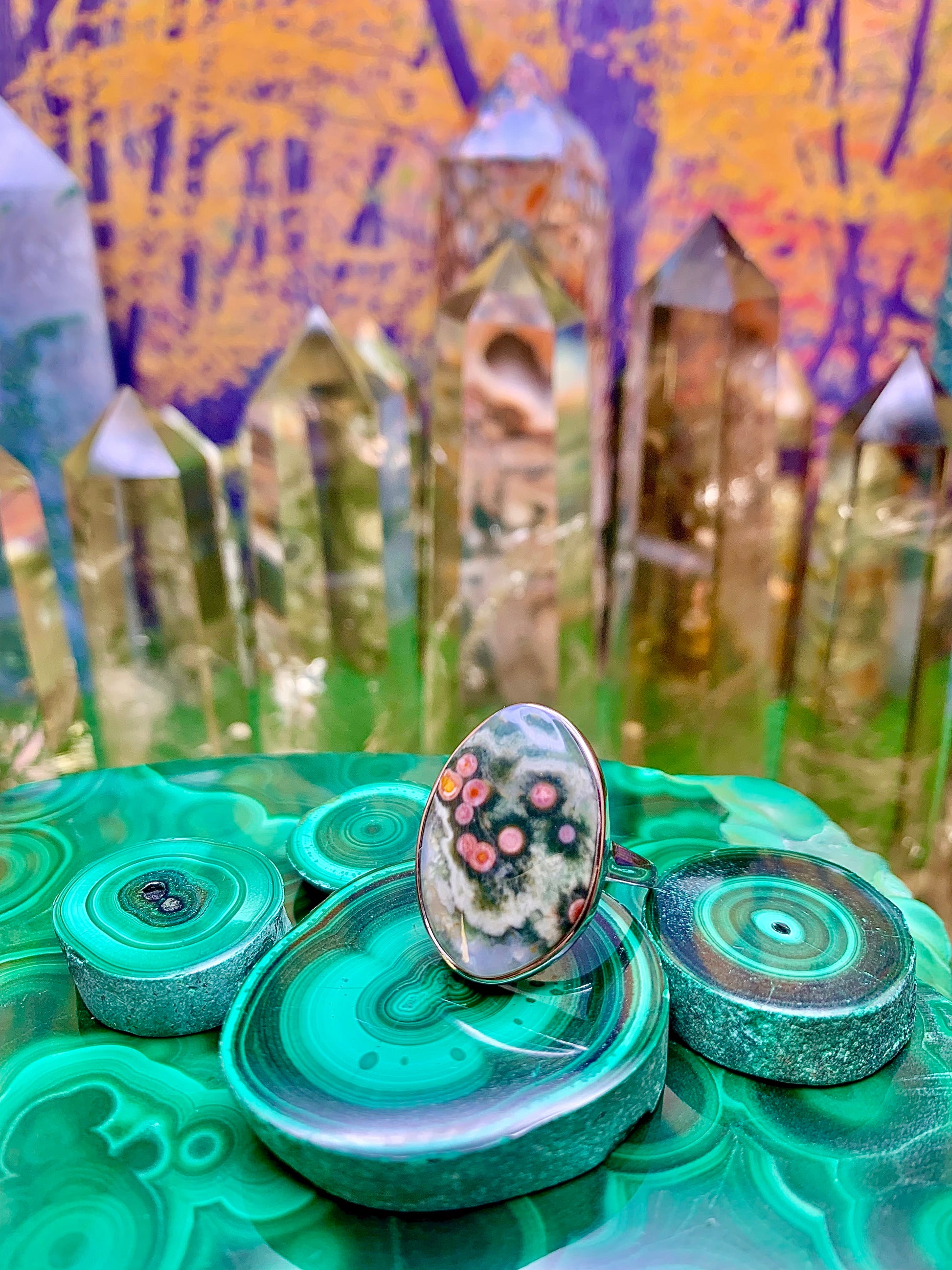 *Ocean Jasper Freeform Oval Ring in Sterling Silver*