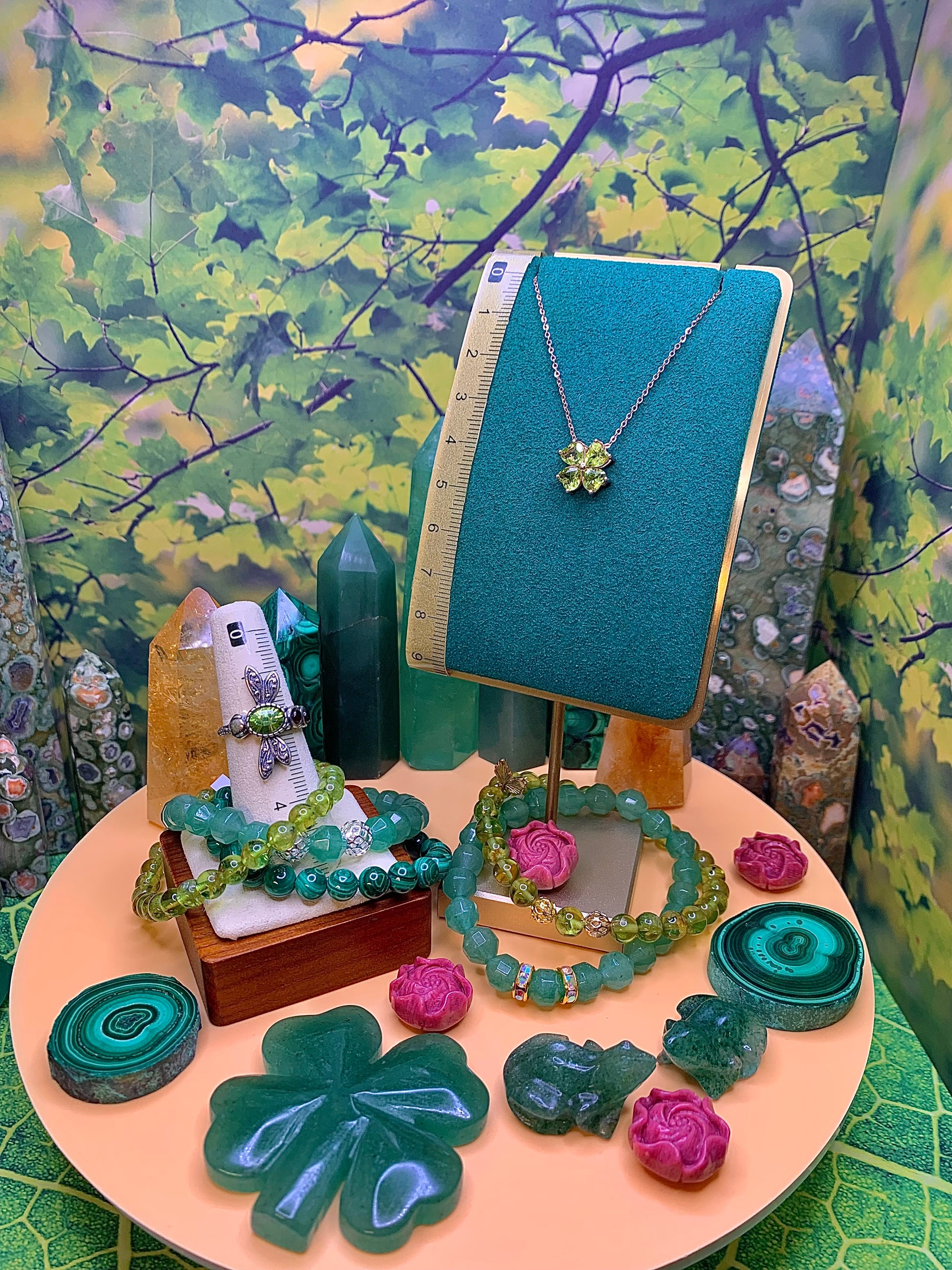 Peridot is a powerful cleaning stone, known to inspire compassion and believed to bring good health and restful sleep. It purifies the mind, body and spirit, alleviates greed, jealousy, bitterness & resentment and reduces stress, guilt and anger. Peridot opens our hearts to joy & new relationships & inspires creativity. It is a very happy stone, bringing about a warm inner sense of worth and well-being.