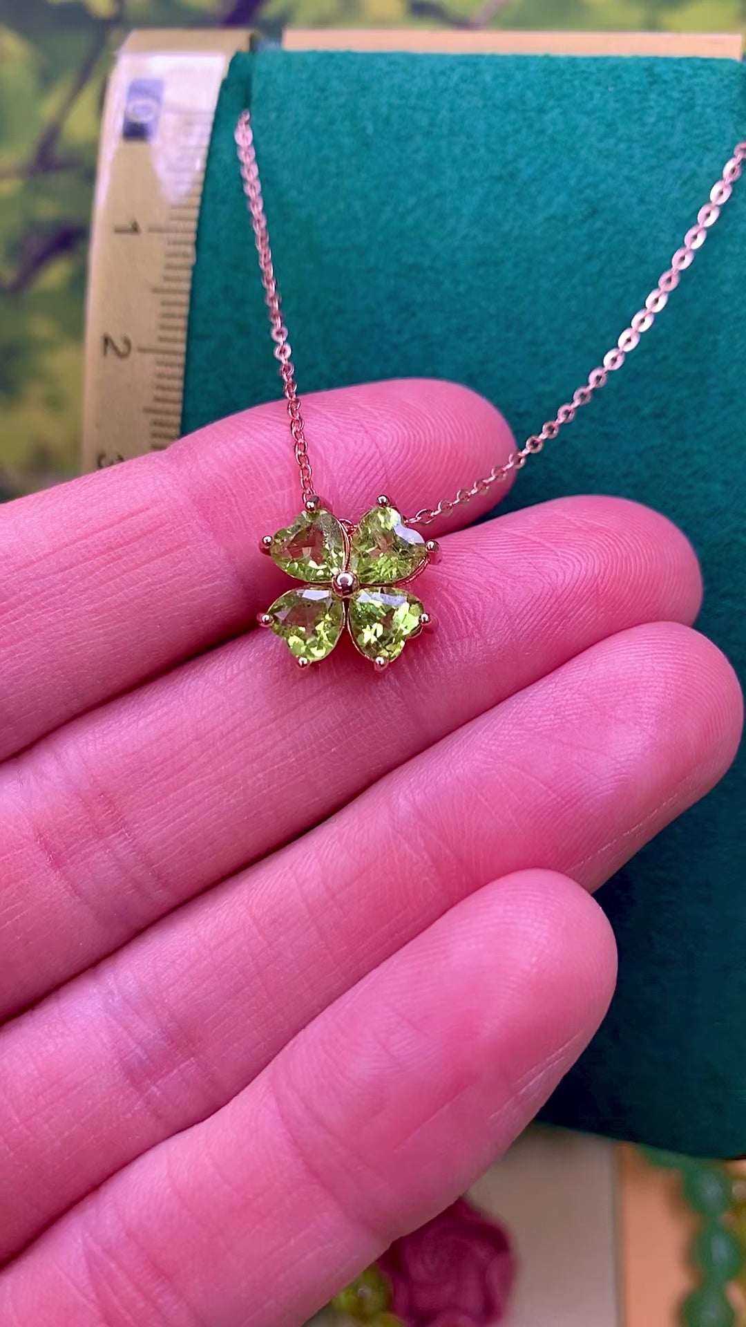 Peridot 4 Leaf Clover 🍀 Pendant with Rose Gold Plating