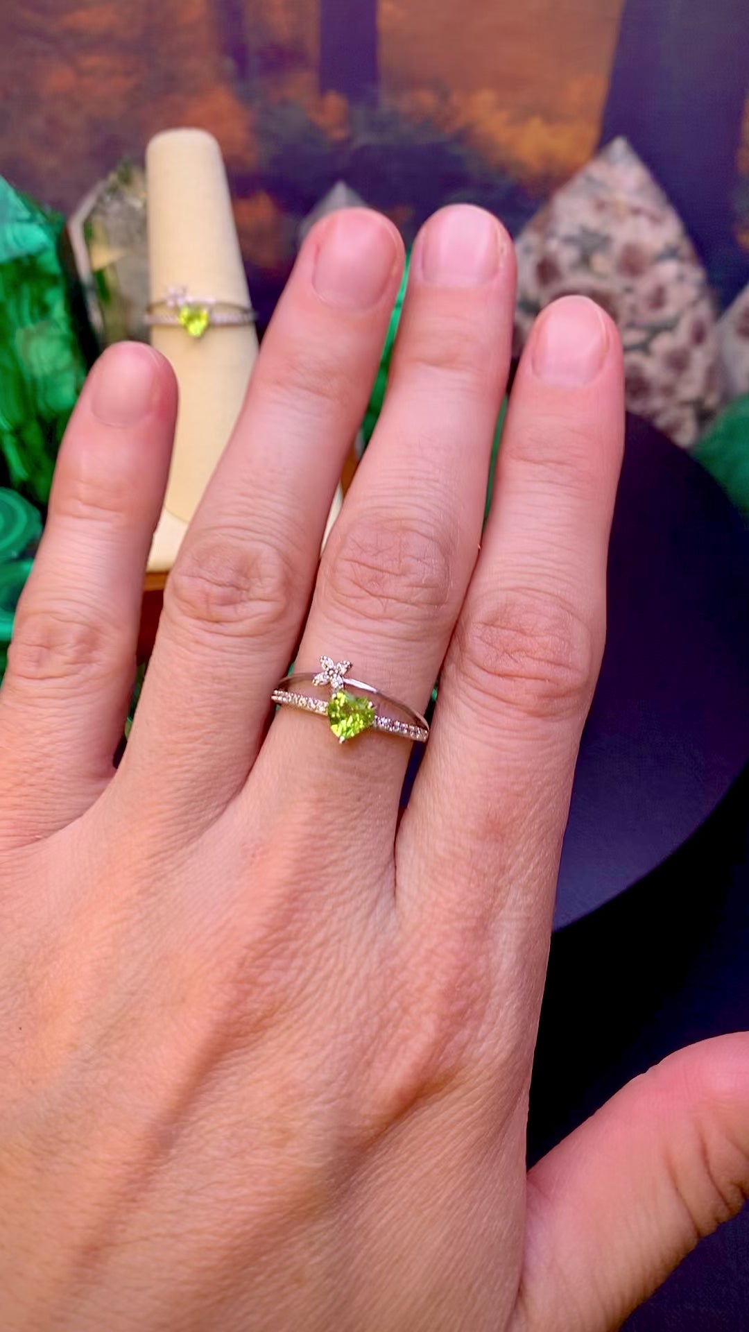 Peridot Heart Ring with Petite Flower in Sterling Silver