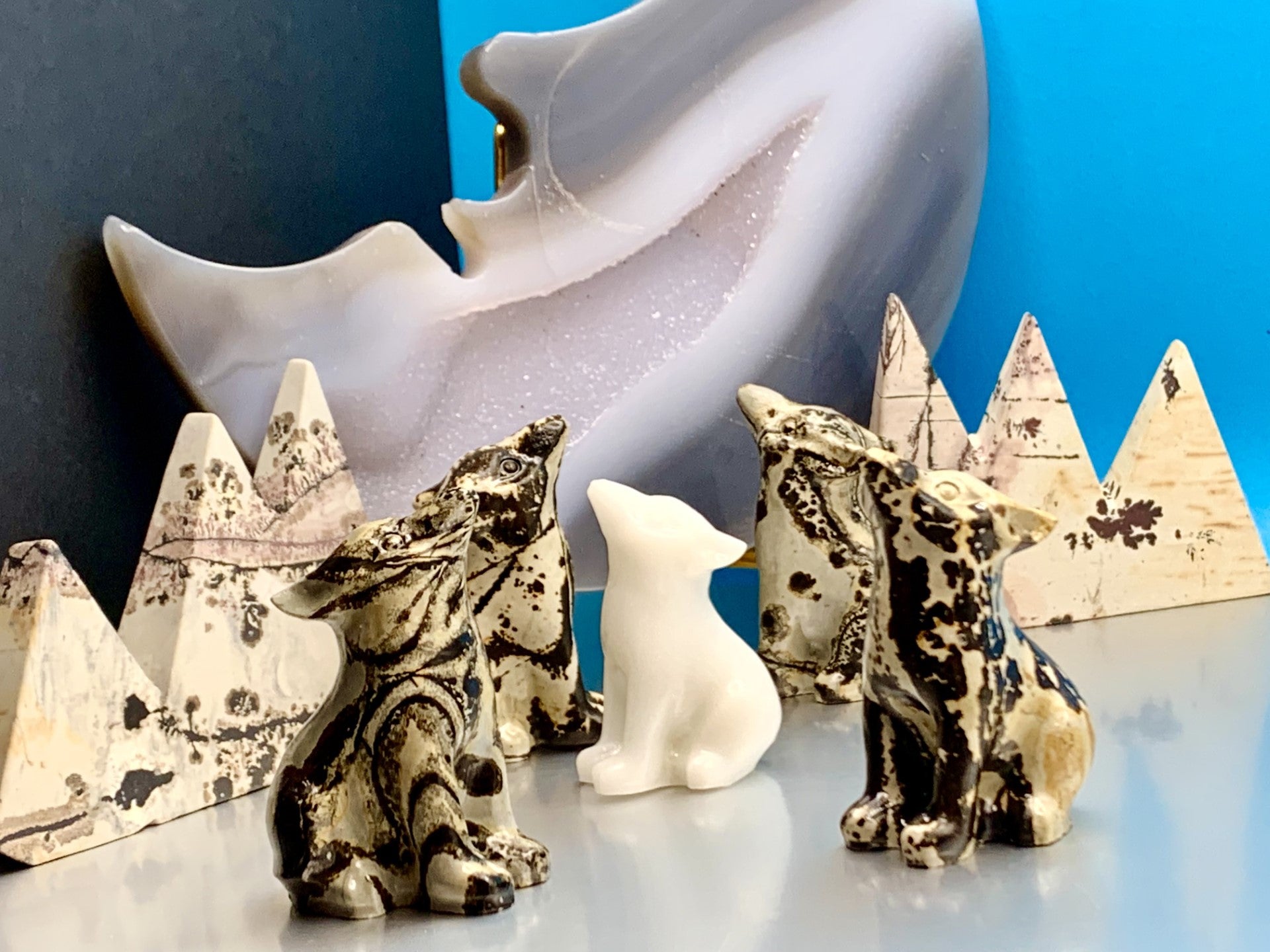 These wolves come in a variety of patterns and there is a smaller option if desired. There is a clear coating to protect the life of this ancient and historical stone.
